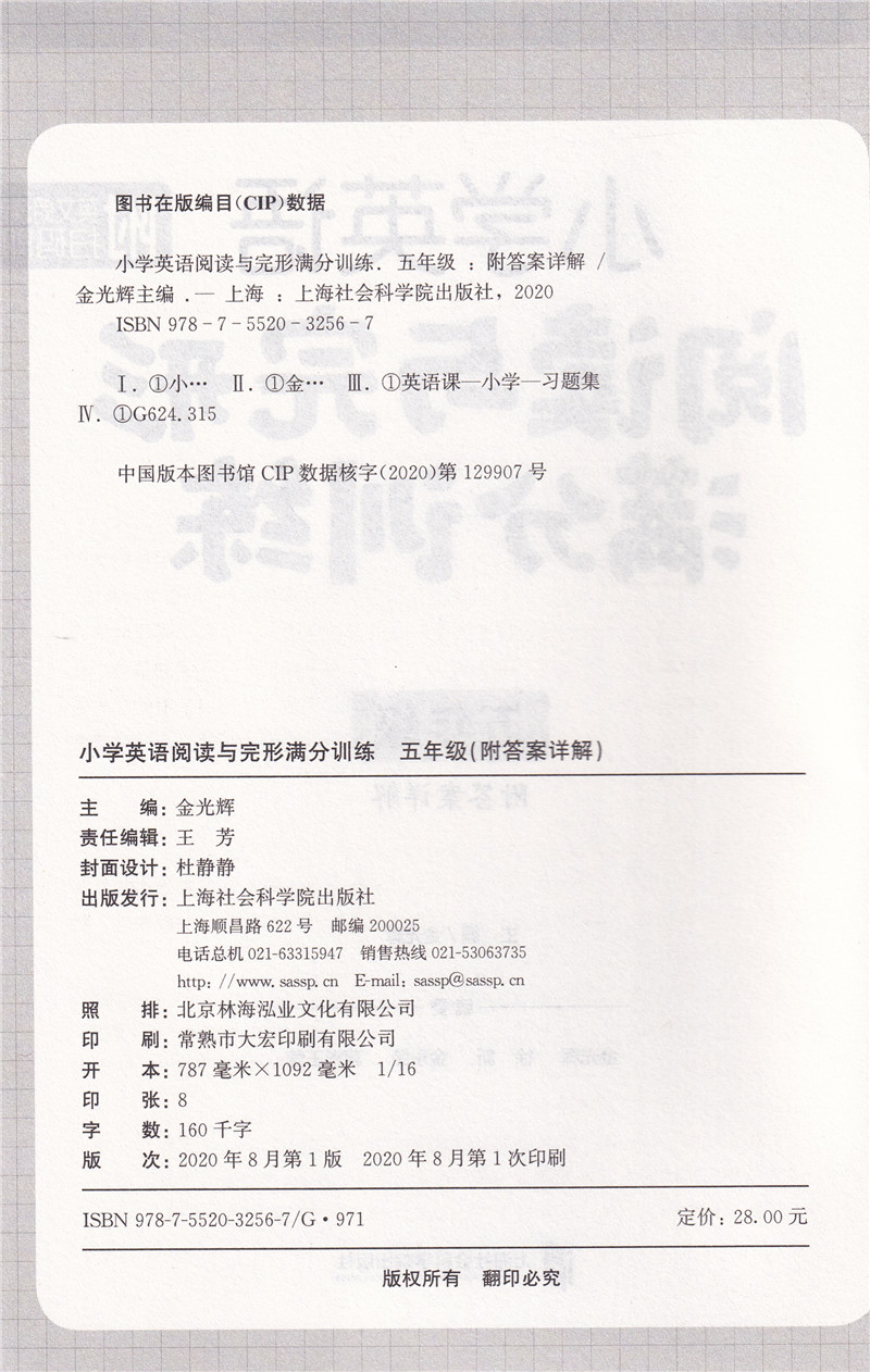 小学英语阅读与完形满分训练 五年级/5年级 生词短语重点句型阅读轻松进阶 阅读完形首字母三大专项练习 上海社会科学院出版社