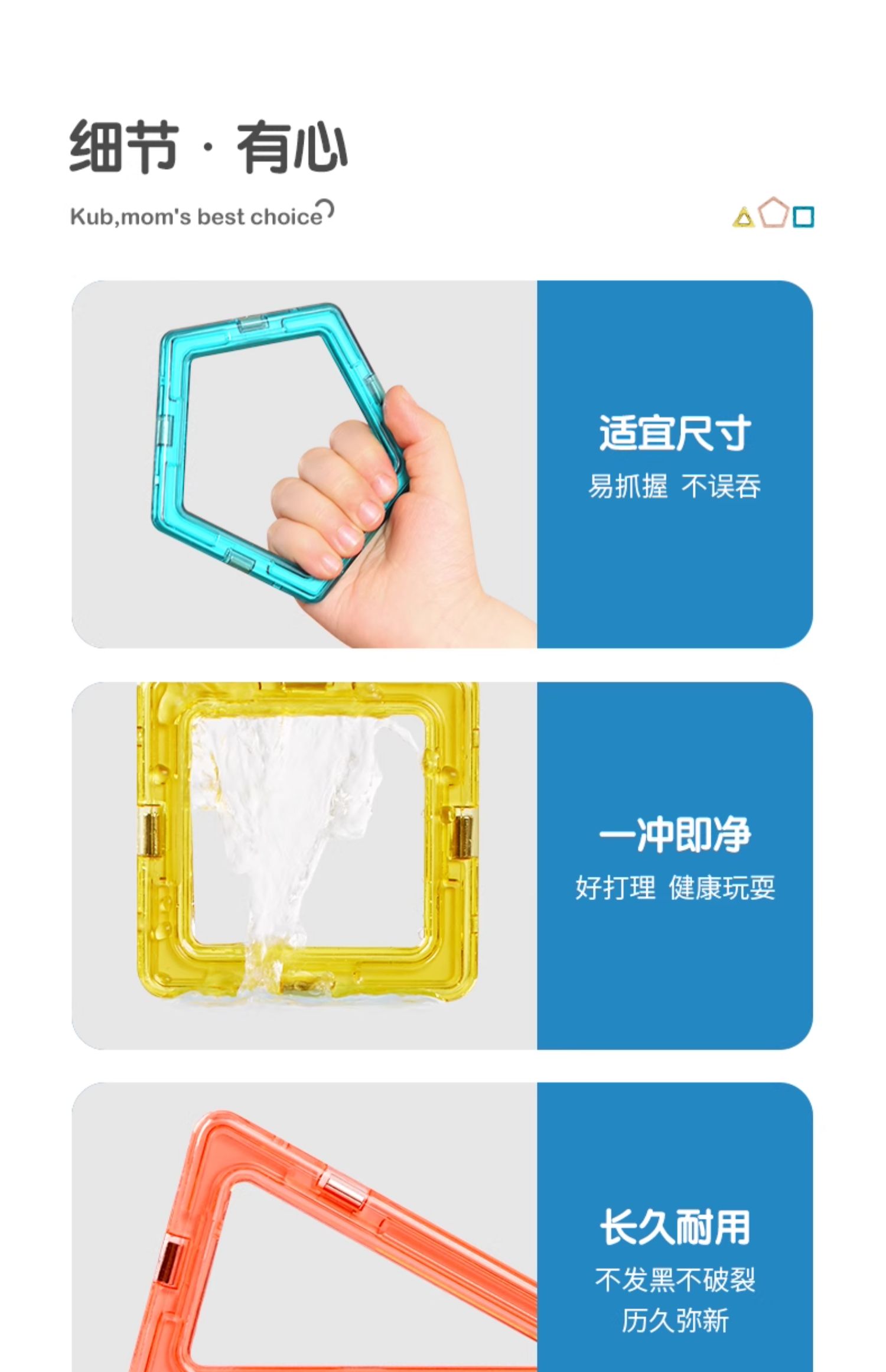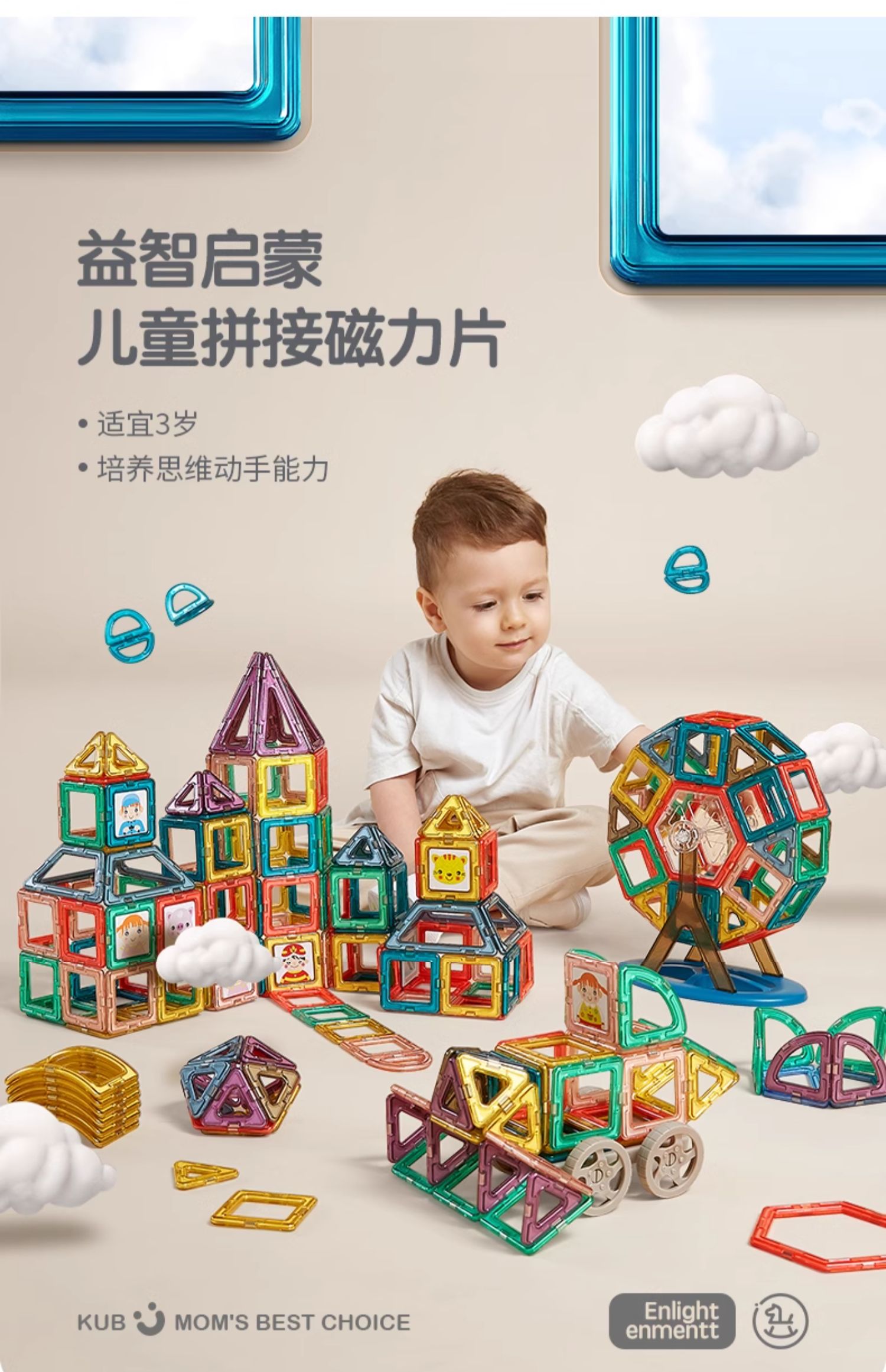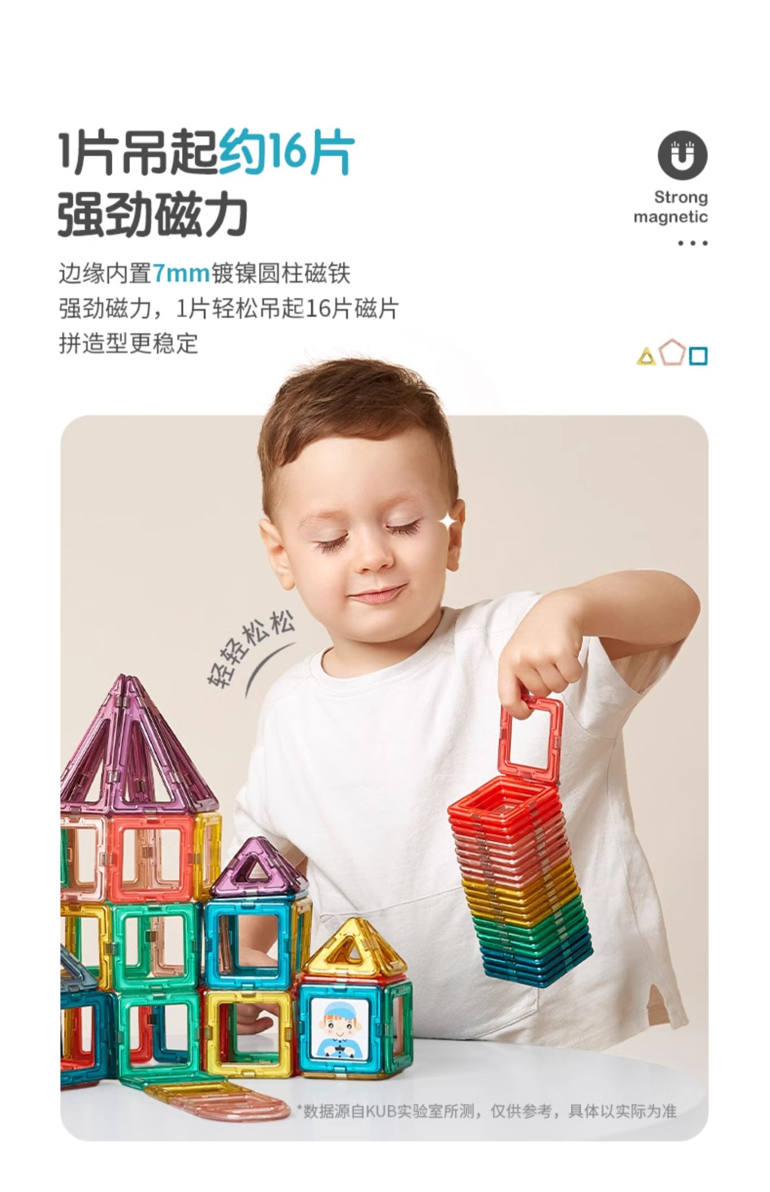 KUB可优比磁力片棒积木 2-3岁磁铁男女孩宝宝拼装拼搭玩具