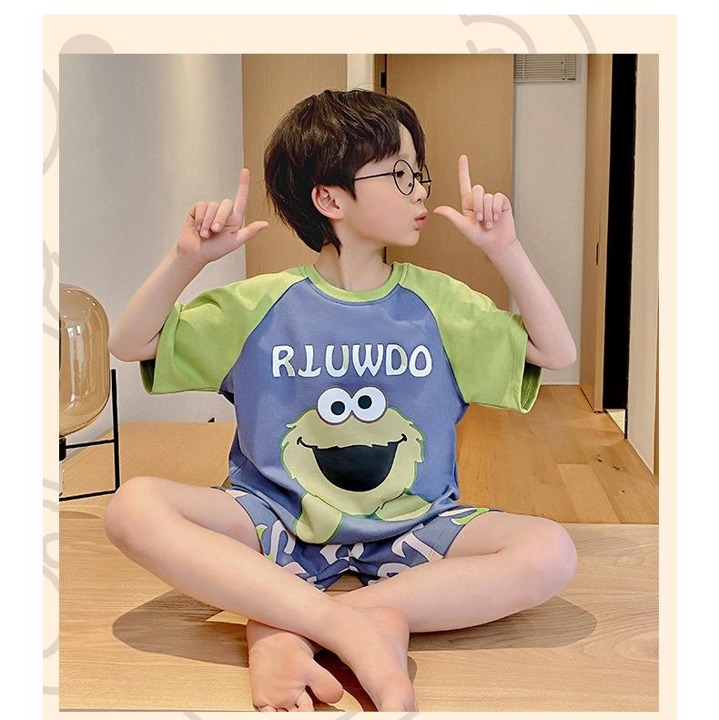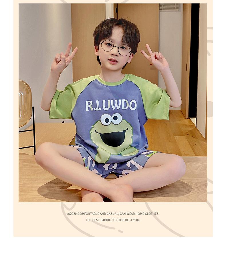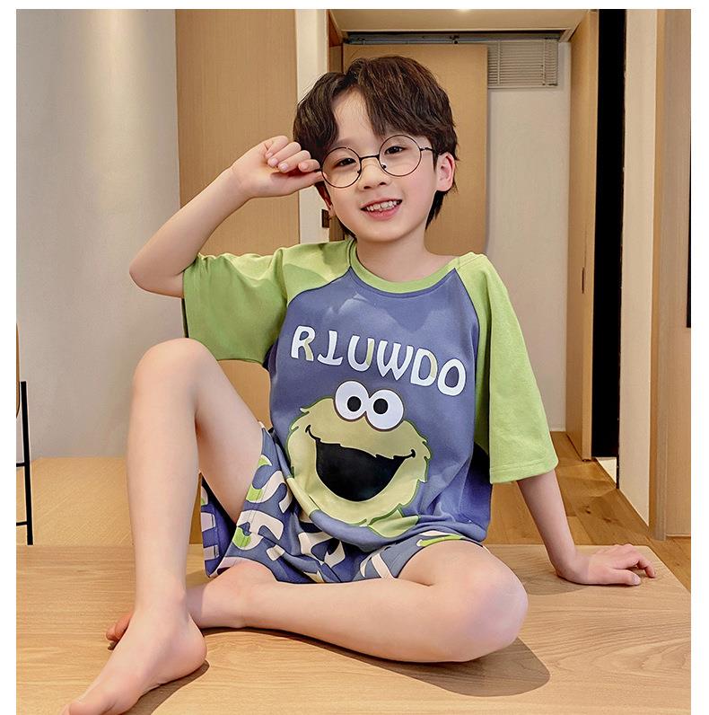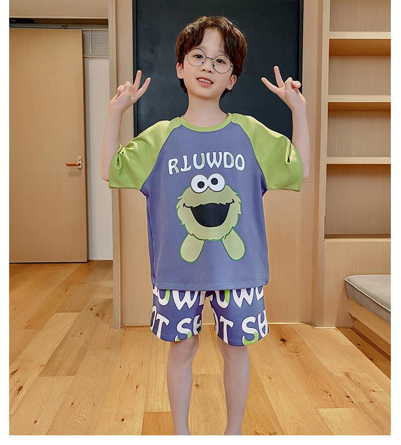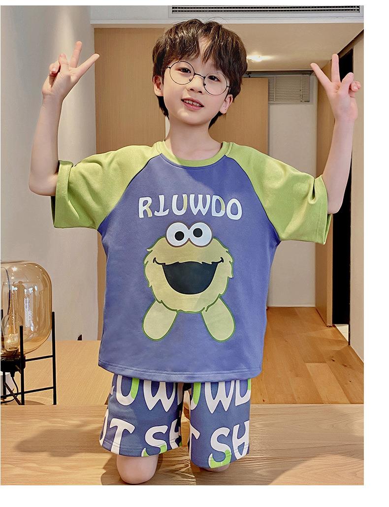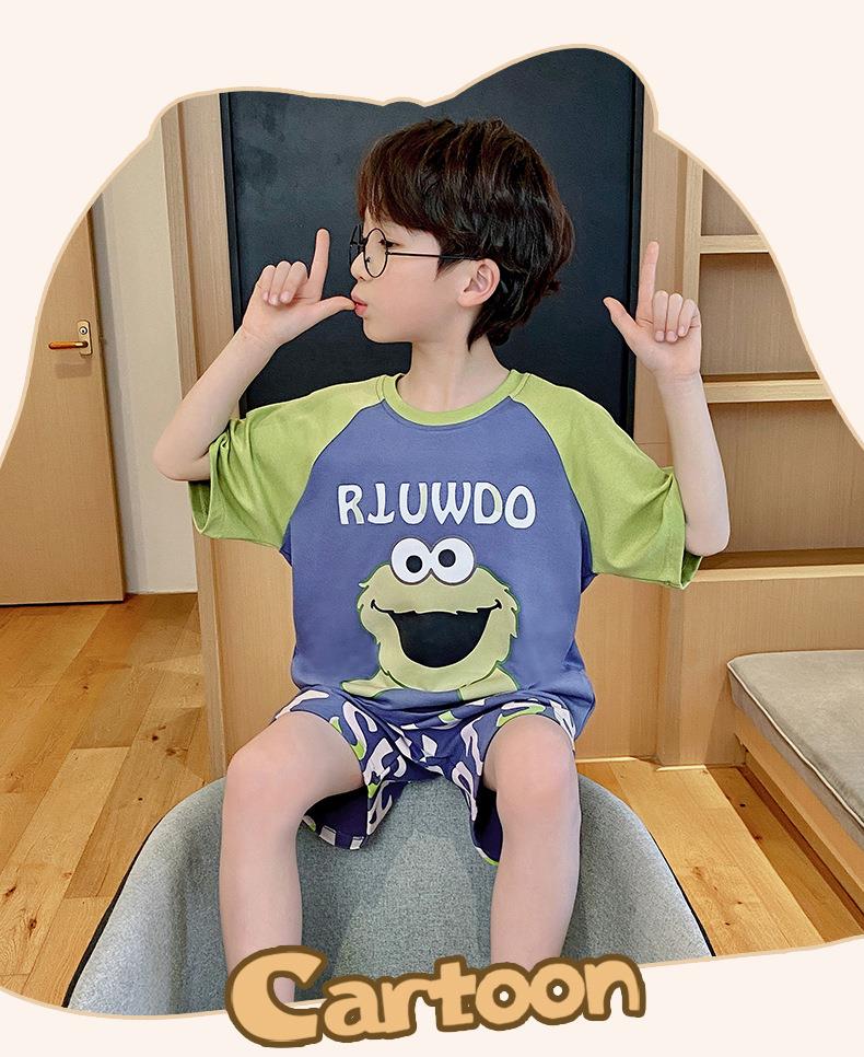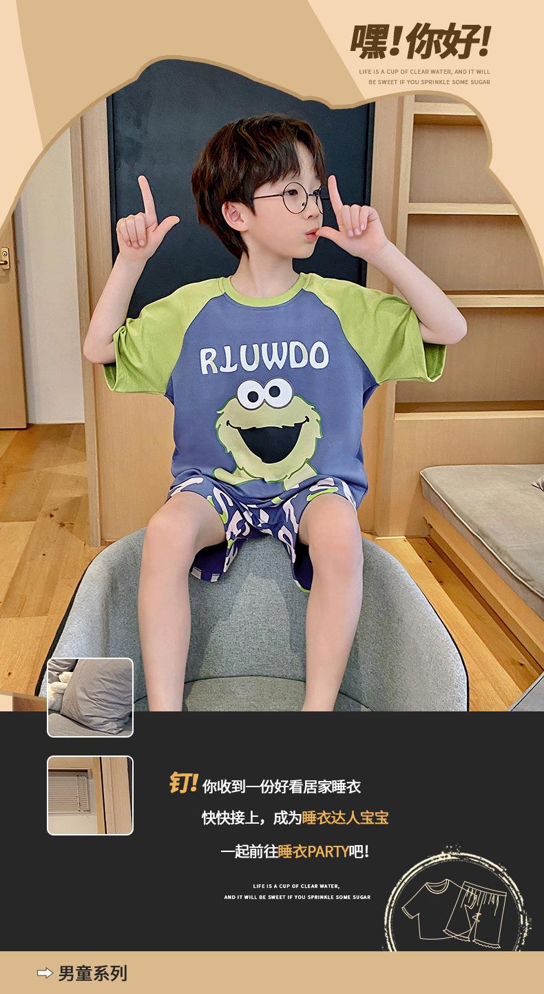 儿童睡衣男童夏季纯棉短袖卡通中大童男孩宝宝家居服夏天薄款套装