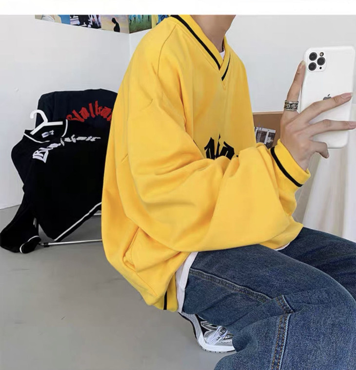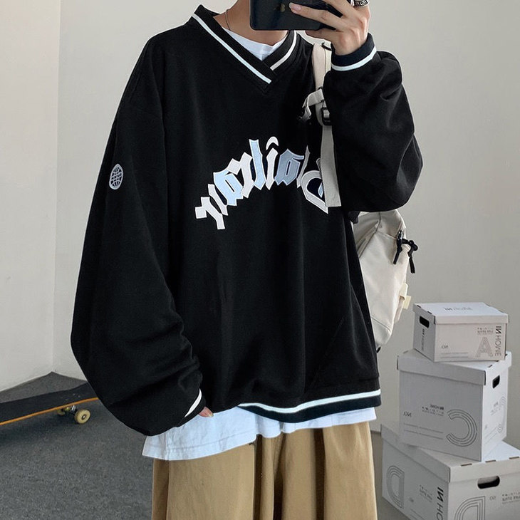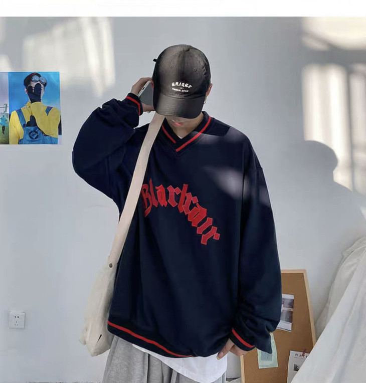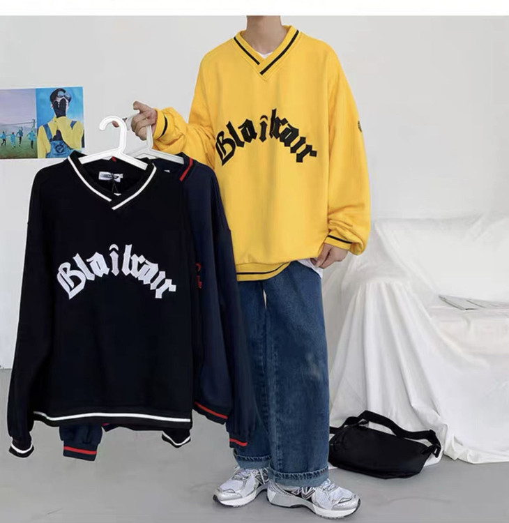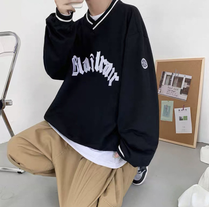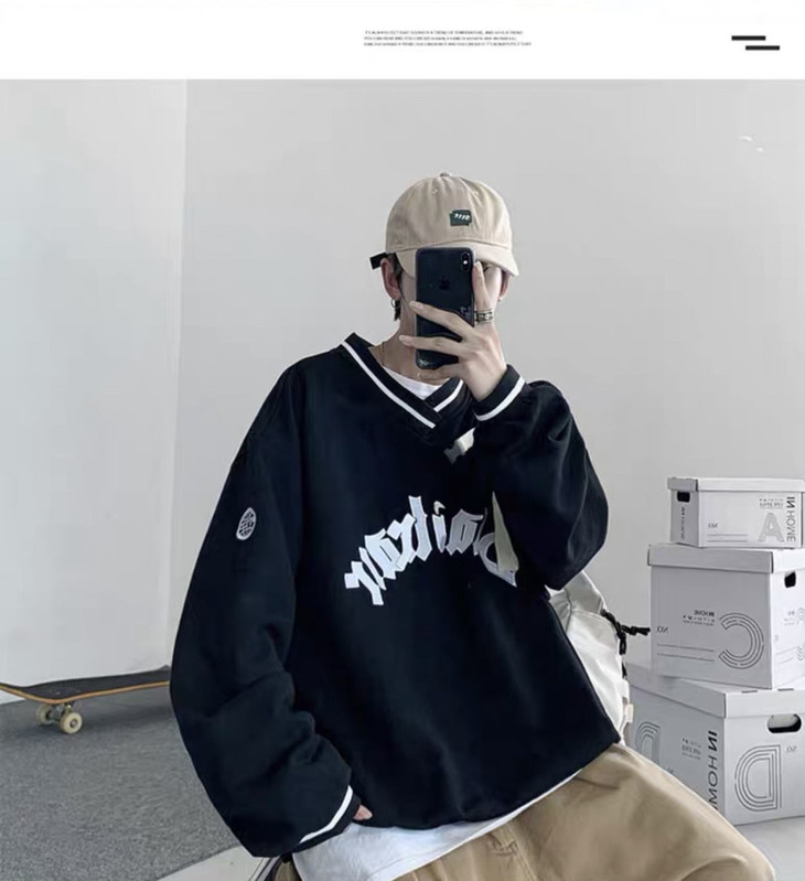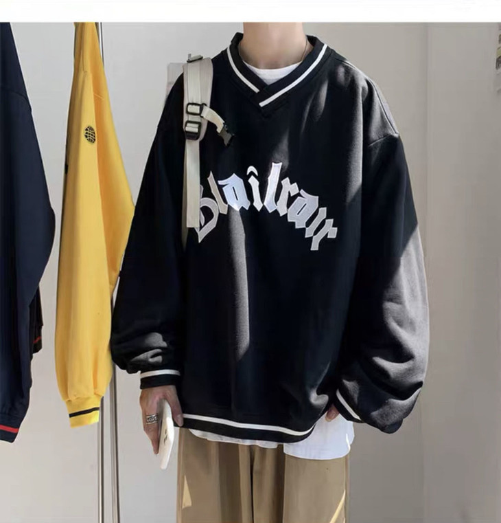春秋季美式街头复古字母棒球风oversize卫衣男港风ins上衣潮