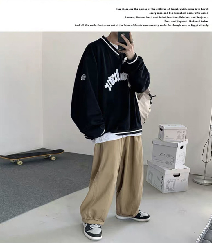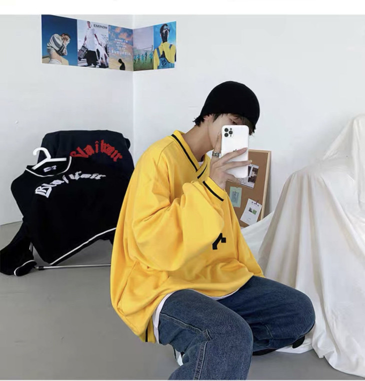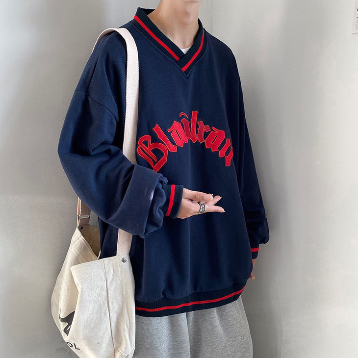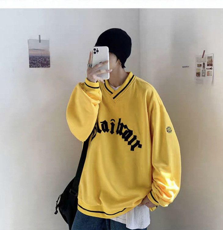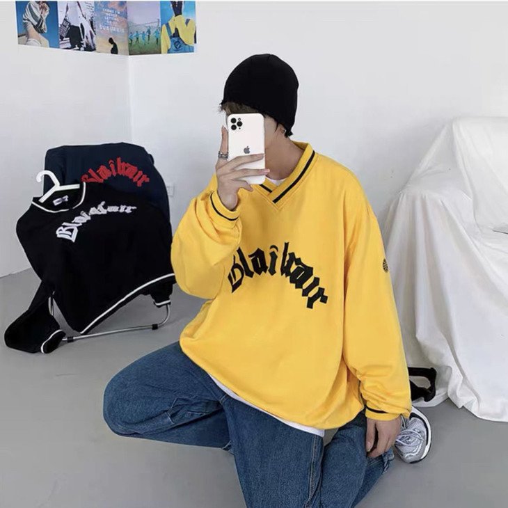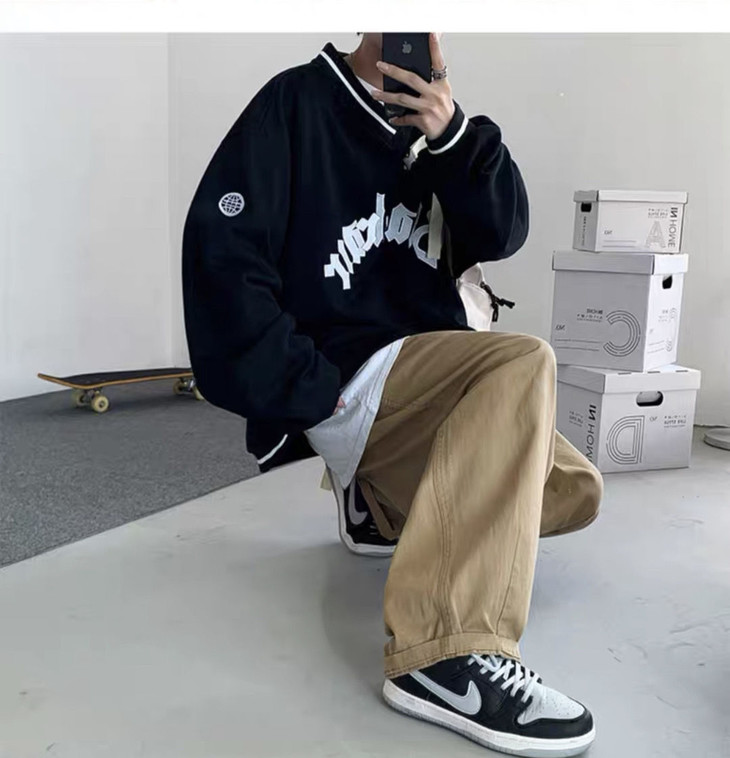 春秋季美式街头复古字母棒球风oversize卫衣男港风ins上衣潮