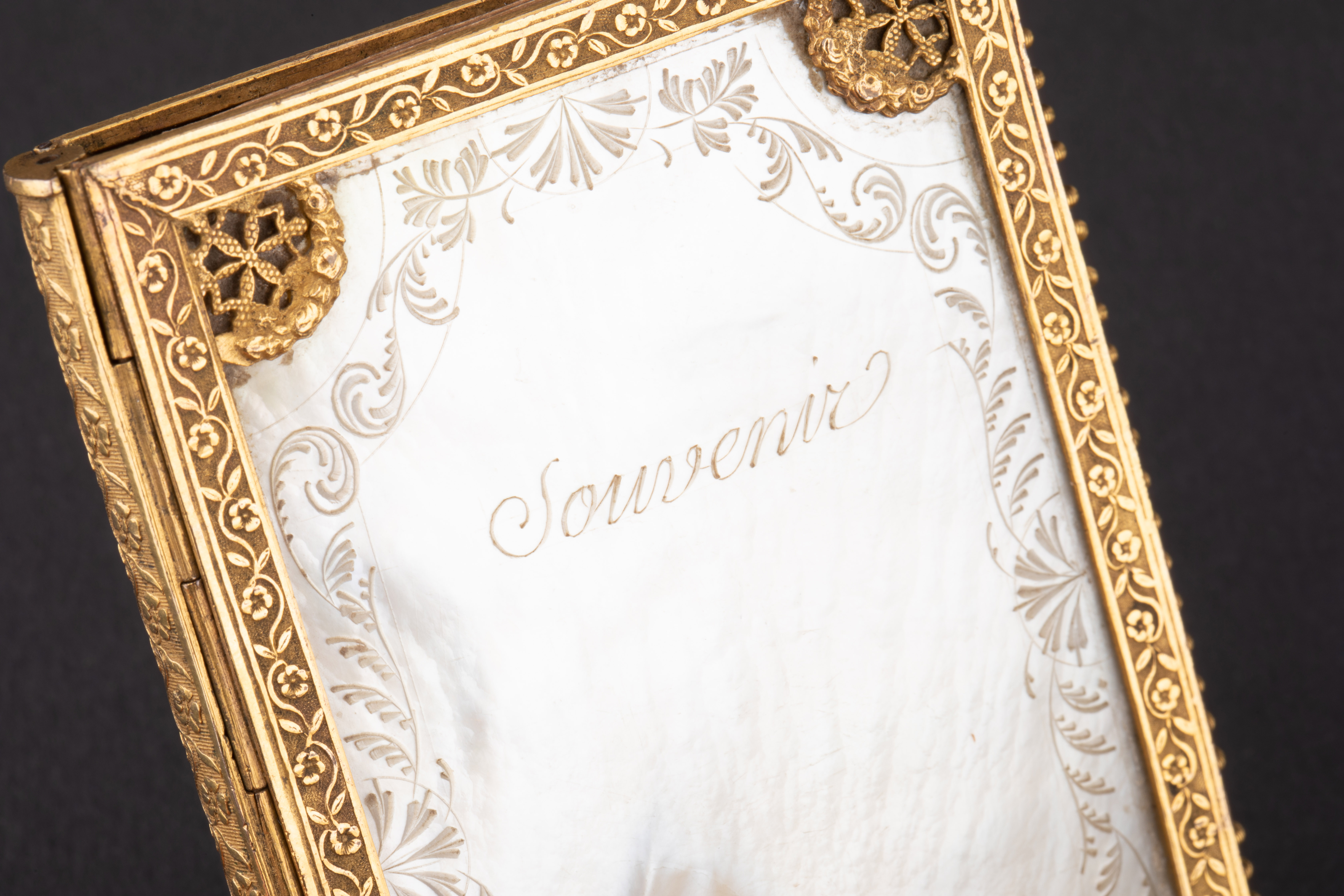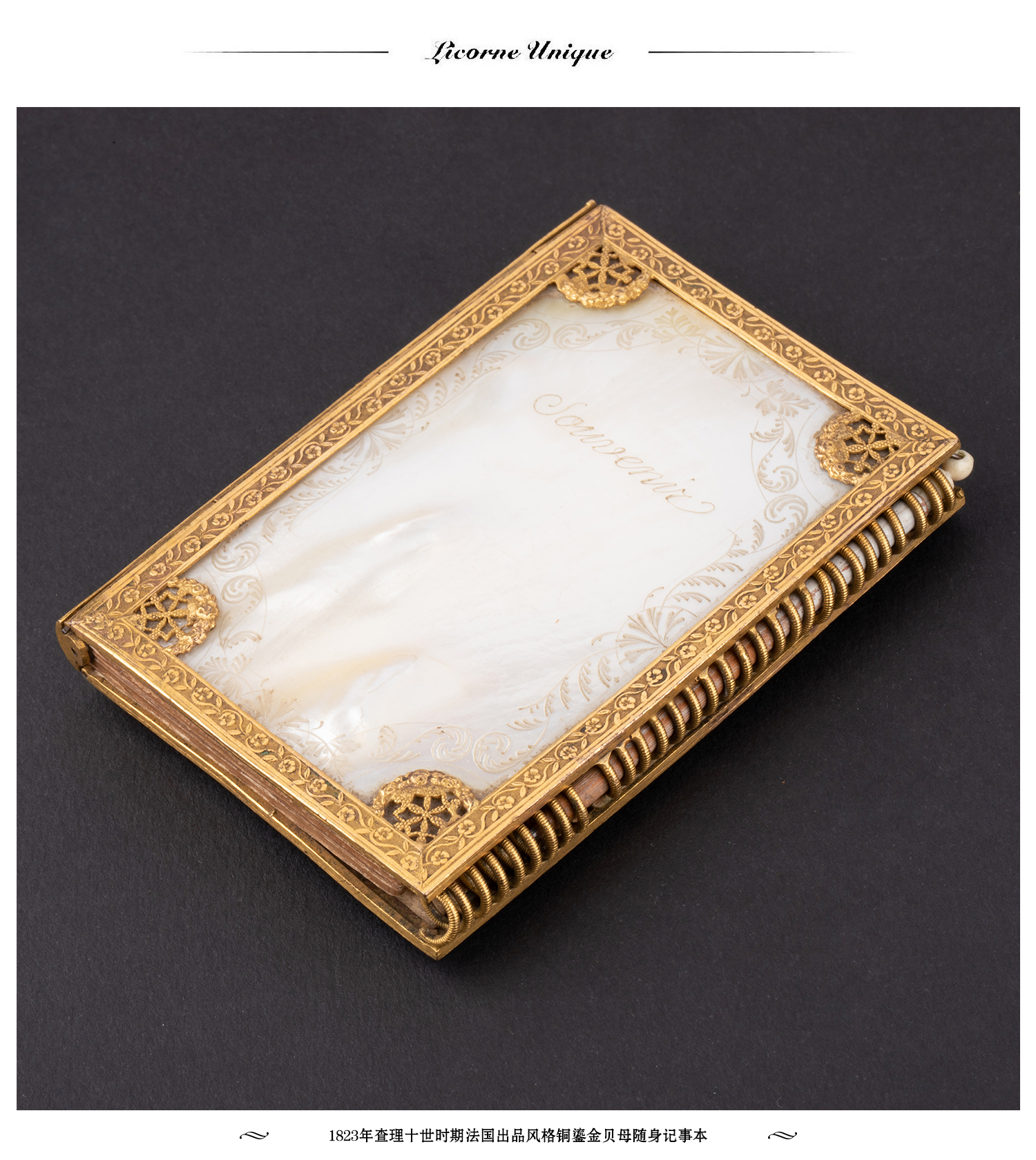 独角鹿西洋古董1823年查理十世时期法国风格铜鎏金贝母随身记事本