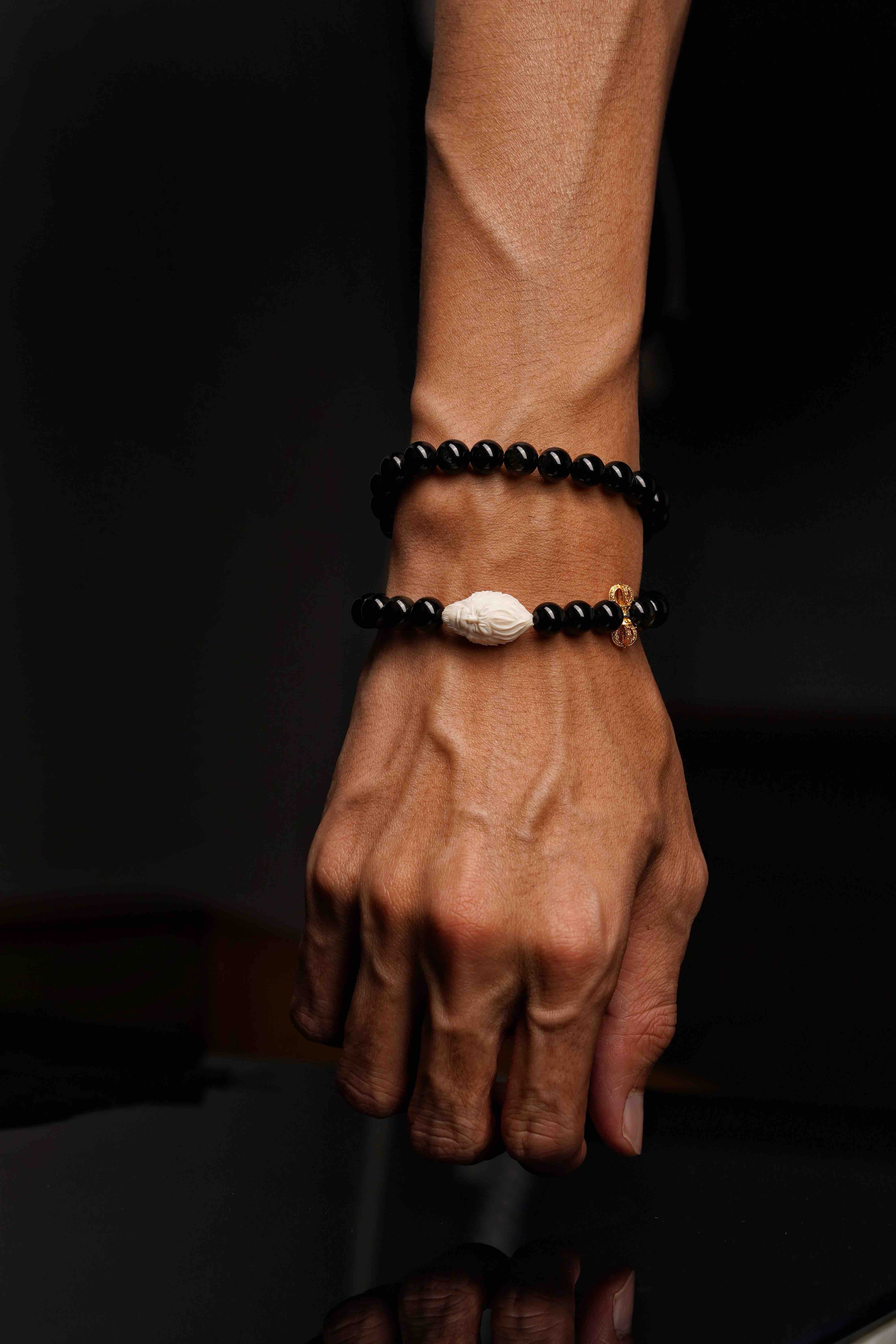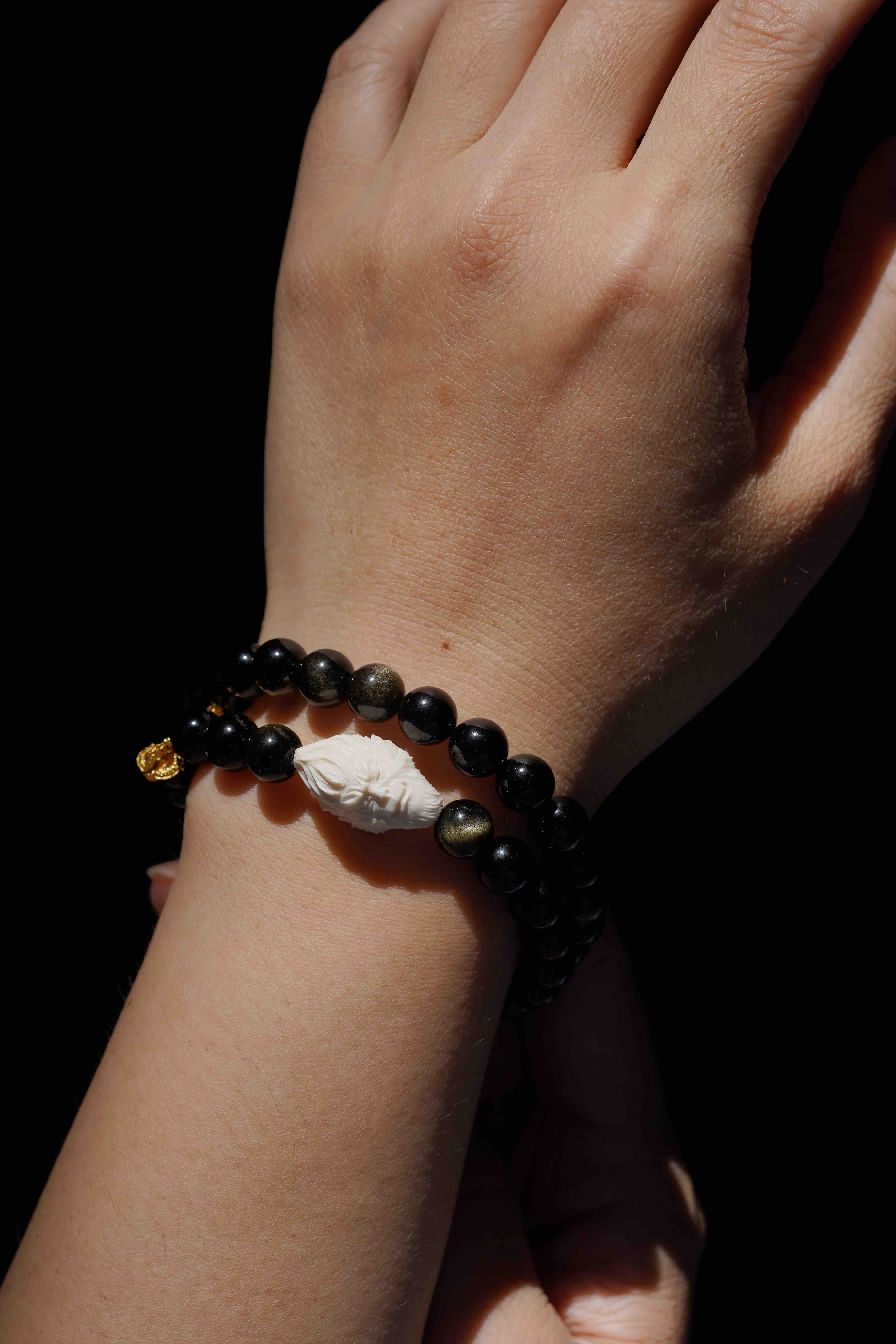 搭配很有力量感的黑曜石,双圈设计,可以作为送男生的礼物,小姐姐戴也完全非常酷。