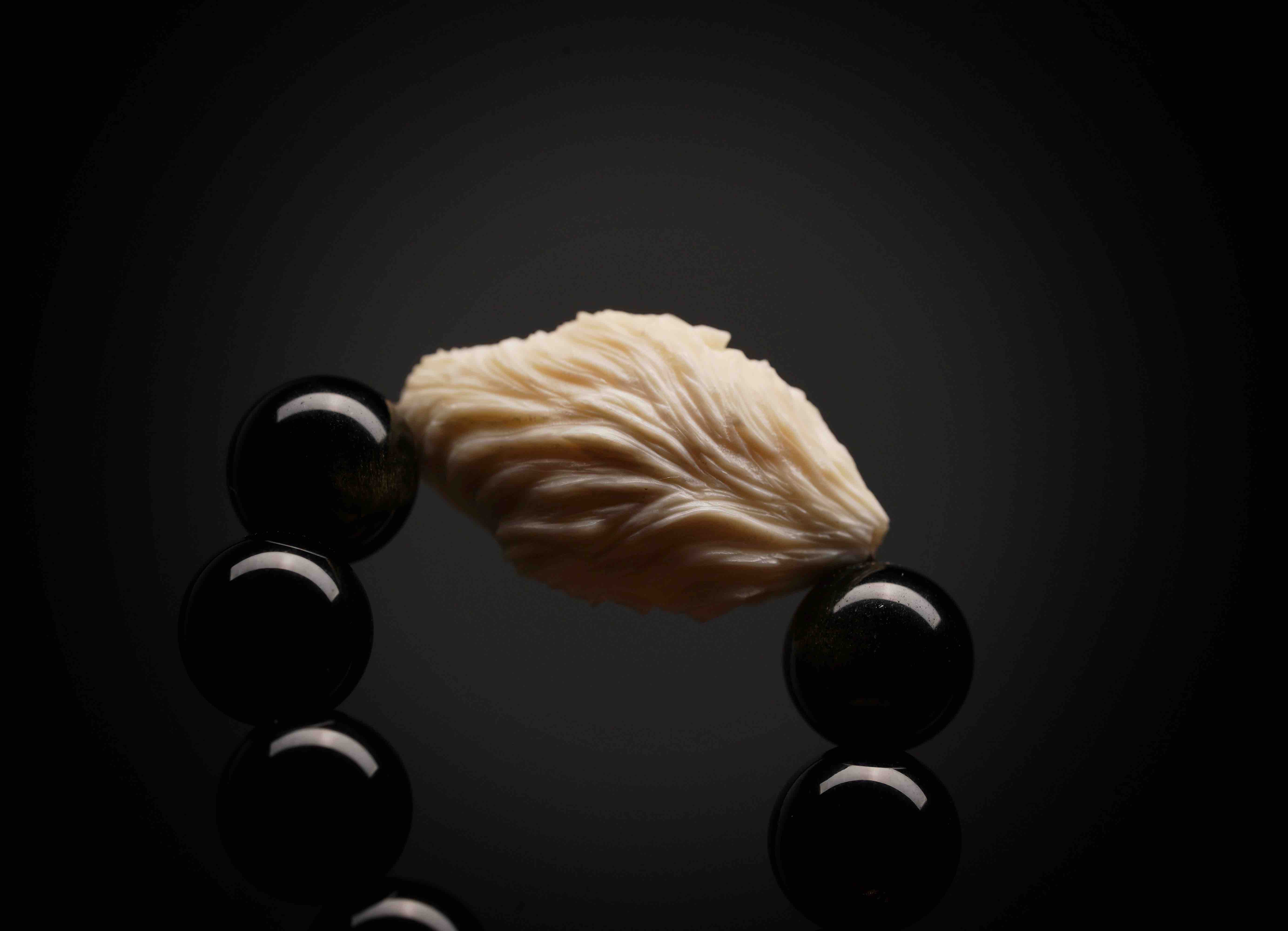是猛犸牙精工雕刻,纯手工,发丝和表情的呈现足够到位!银电镀金的配件也是用金工的标准