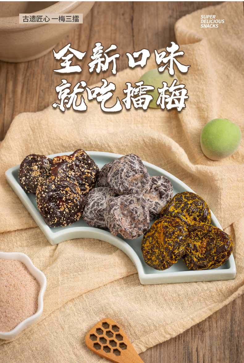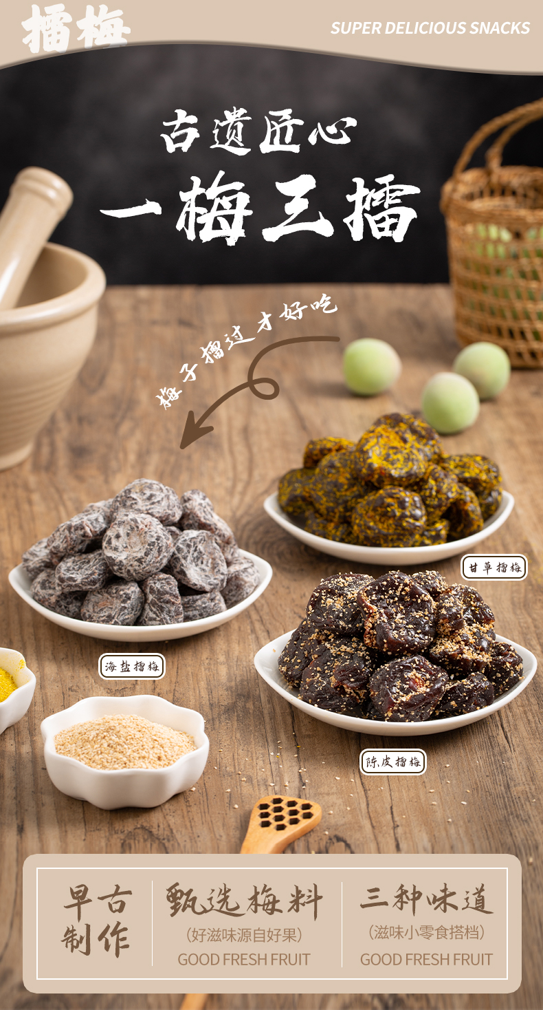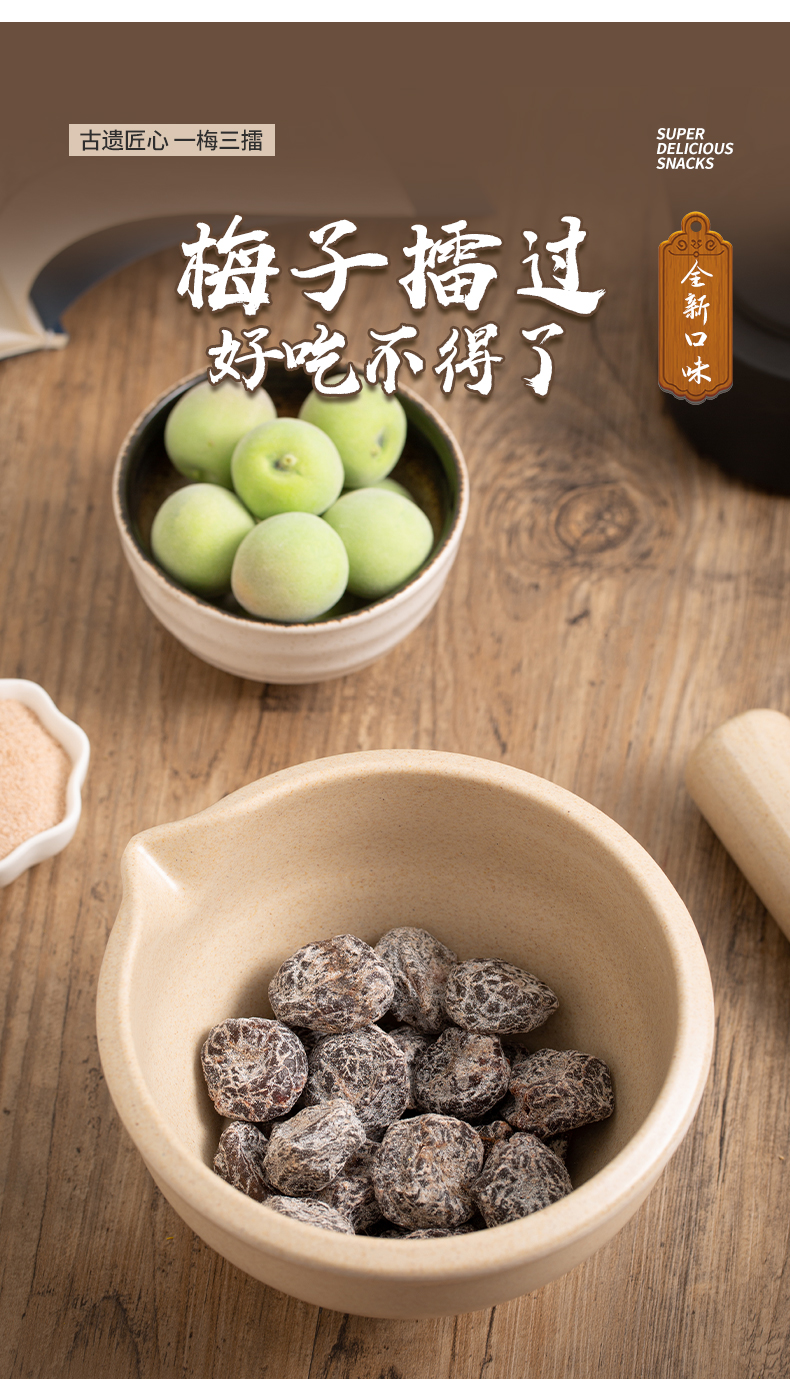 【古法手作❗️三口味擂梅】陈皮/甘草/海盐三种口味,一梅三擂工艺制作,口感丰富酸甜解腻,口感醇厚越嚼越香,开袋即食咸甜回甘古法匠心休闲解馋零食L-d