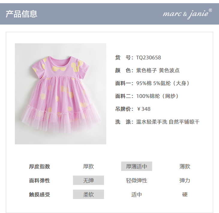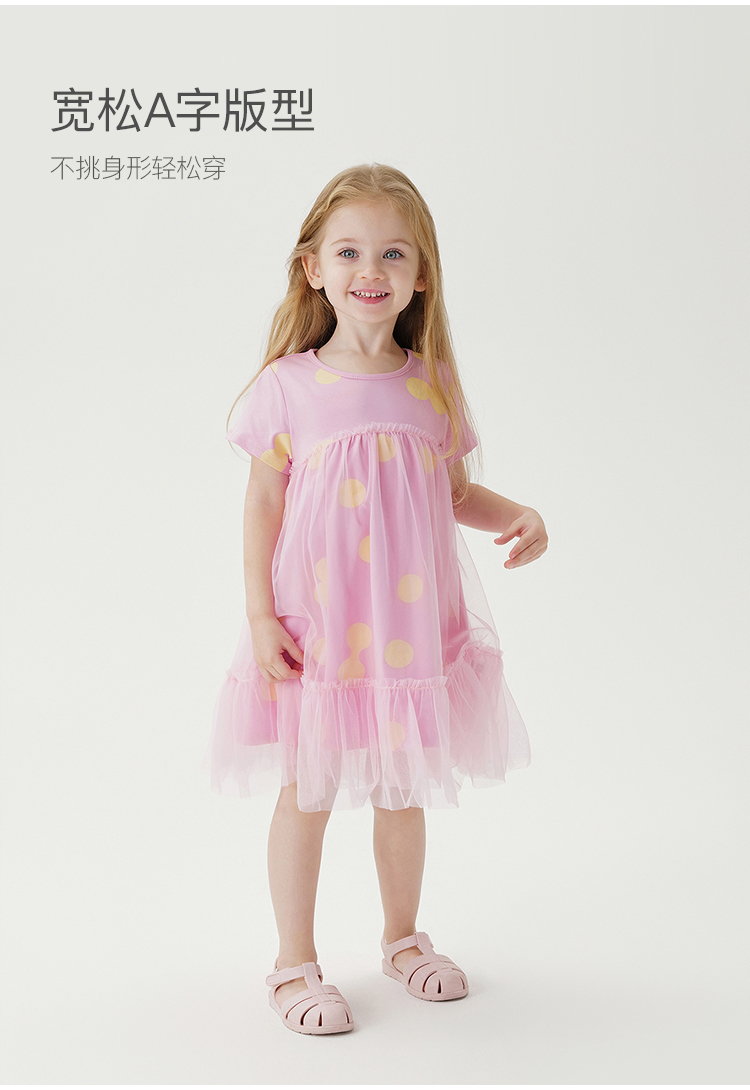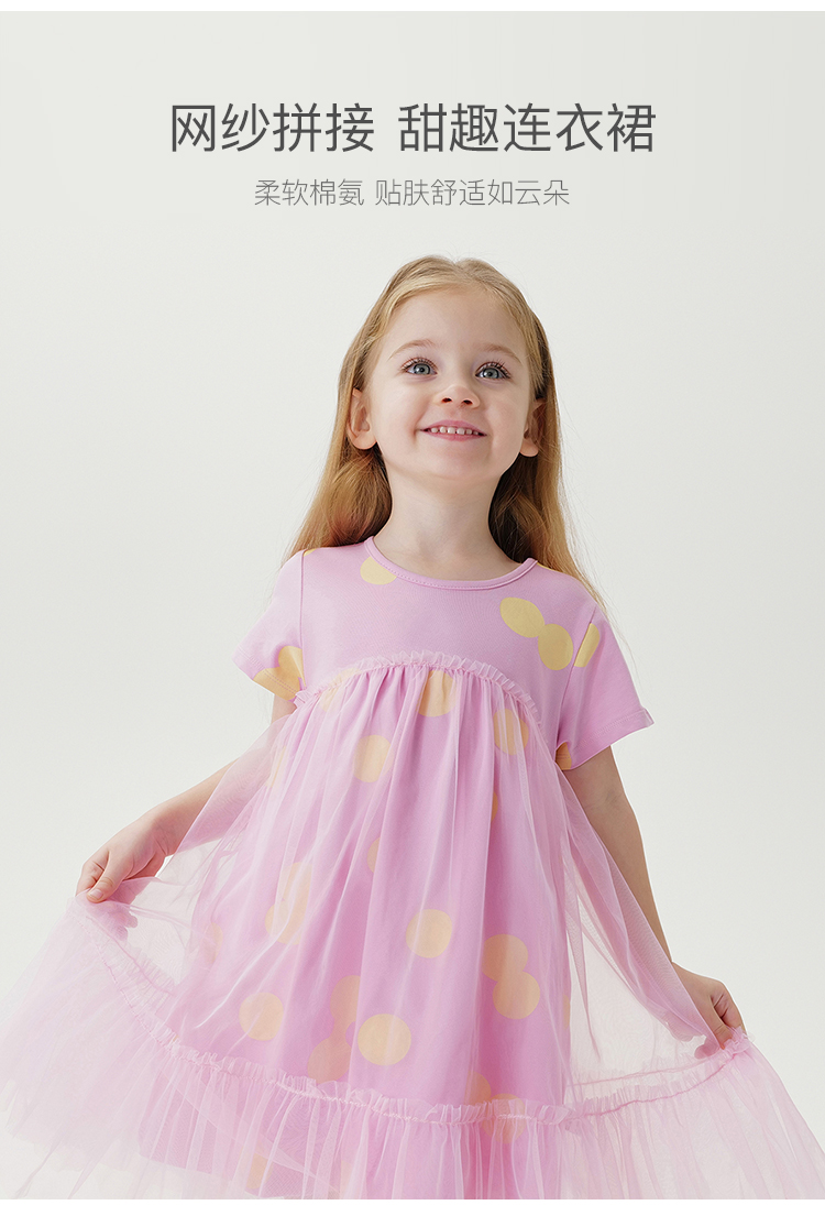 马克珍妮夏装新款 女童趣味满印网纱拼接连衣裙230658