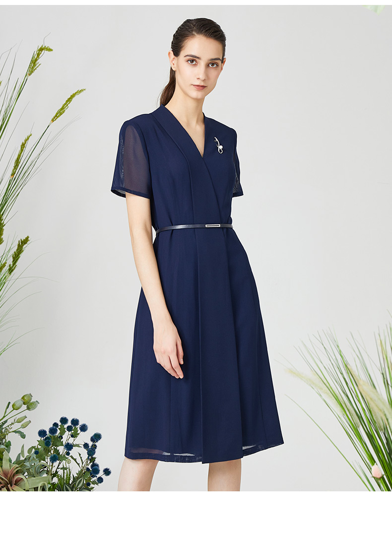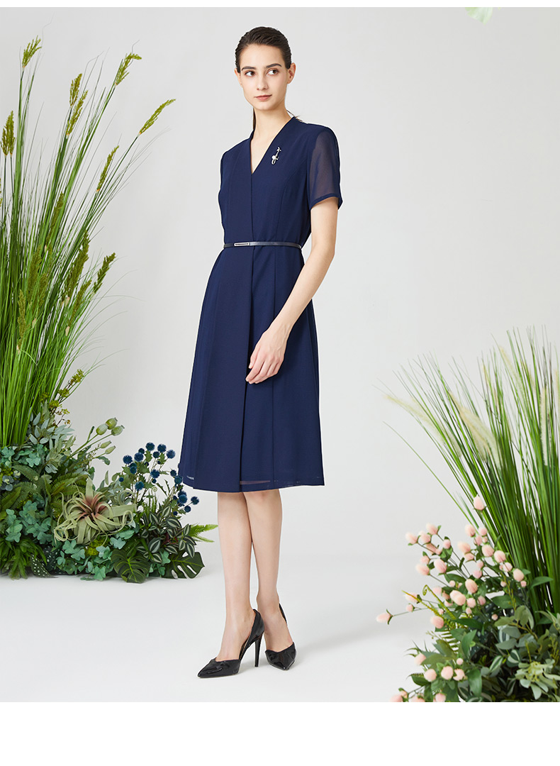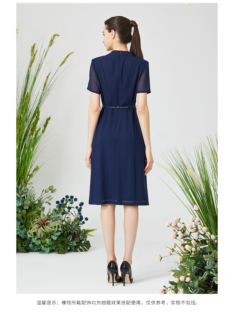 皮尔卡丹女装连衣裙知性通勤纱袖通勤收腰连衣裙P3215D3113L2