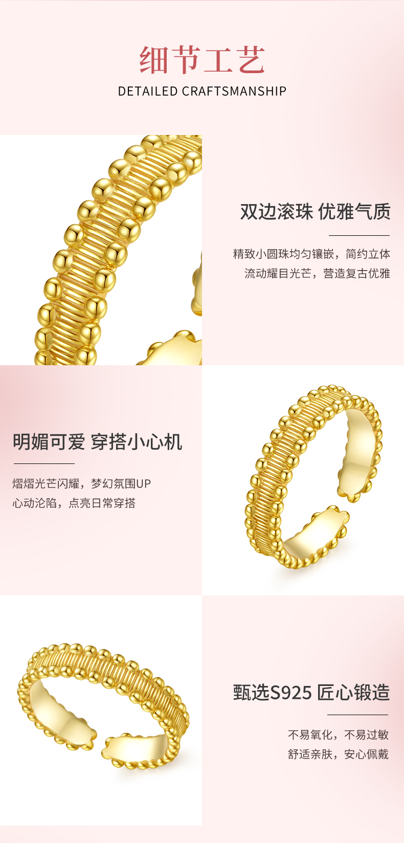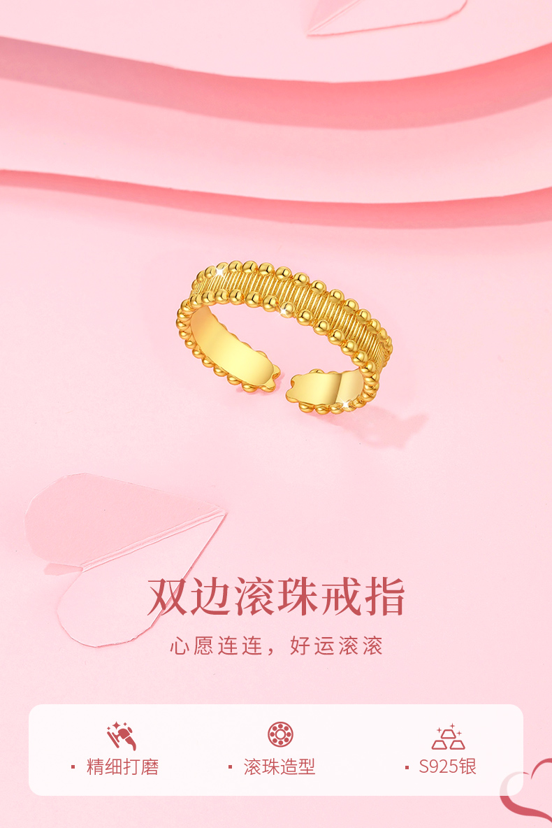 卡蒂罗/KADER 双边滚珠戒指 中古风拉丝珠边国潮轻奢复古高级感时尚开口戒 日常出行必备吸睛百搭