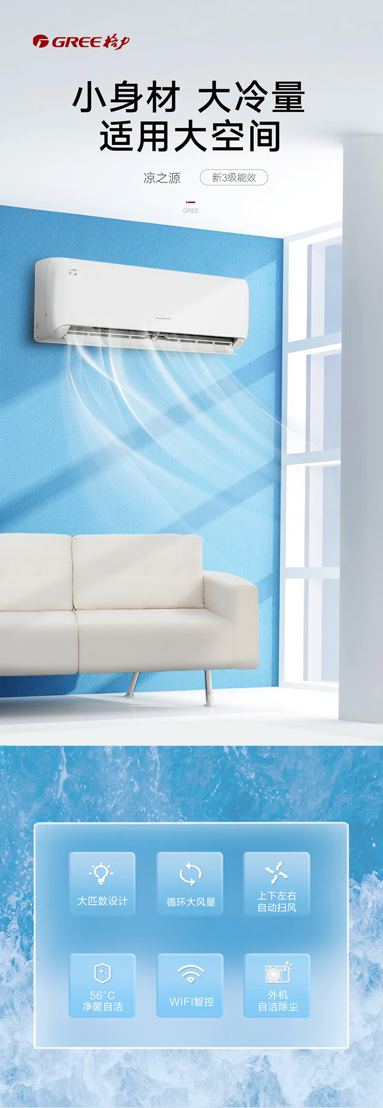 GREE格力 凉之源 2匹/3匹 三级能效 挂机空调 大匹挂机