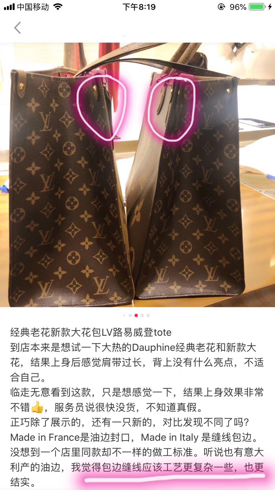 今天安排的重磅炸弹大家珍惜,多久没看到的高级货,专为高端客户准备的一批订单货,继续来!用的全部是欧洲定制的原版五金,每个细节都完美对应订单细节要求,认准原版订单!每个尺寸仅有七八十只数量,一直在等这款高端货的姐妹们今天有福了!速度抢!正反双侧可切换双面背哦,手提/手拎肩带。正面大花logo,侧面小花logo。色调搭配方面相当有味道。尤其春夏配吊带之类估计刷斗音啥的都见到过,经典大花购物袋就是出味道!且相当实用!注意数量别嫌少。全部日本特别渠道。货源纯正,包特别正! 重点讲解五金,五金是非常重要的重点!外面所有版本用的均是锌合金,而zg一定是精钢。材质上的区别,材质不同刻字的状态(清晰度等)注意看刻字的效果立体干净!来张手机实拍特写注意感受老花的质感。全部日本渠道,老花皮料非常正!千万不要和市面上的驴比。皮料是驴经典老花专用皮料[让我看看][让我看看]质感就能看出来绝对不是一直普通的包。大面积的老花光泽度非常好,并且注意看老花颗粒非常饱满。正反两面都来感受下这份皮料质感,注意感受不同颜色老花的亮泽度。全部日本渠道,老花皮料非常正!千万不要和市面上的驴比!手背/手拎肩带,怎么背都好看。并且包身正反双侧可切换双面背哦,大花logo,色调搭配方面相当有味道。经典大花购物袋就是出味道!且相当实用!注意数量仅有每个尺寸七八十只,别嫌少。全部日本特别渠道。货源纯正,包特别正! 内部空间,大tote包型,容量非常足,部分大号小号通通拥有大容量!!真的太能装了,充分利用内部空间,超能装!从细节能感受到这只包的质感是非常好的,绝对正。大小号都有哈,小号样品一直拿不到只能等到下周直接和订单内的数量一直给我我等不及就不拍了,除了尺寸不一样再哪哪儿都一样哈,原本小号的成本和大号一样,我自己给大家让利几十块!这批日本订单没有包装,贸易公司配了订单内多出来的手提袋给我们,也行了,专柜还经常不要礼盒呢,当环保吧还省下了包装钱,毕竟羊毛出自羊身上。这期法国产地 注意