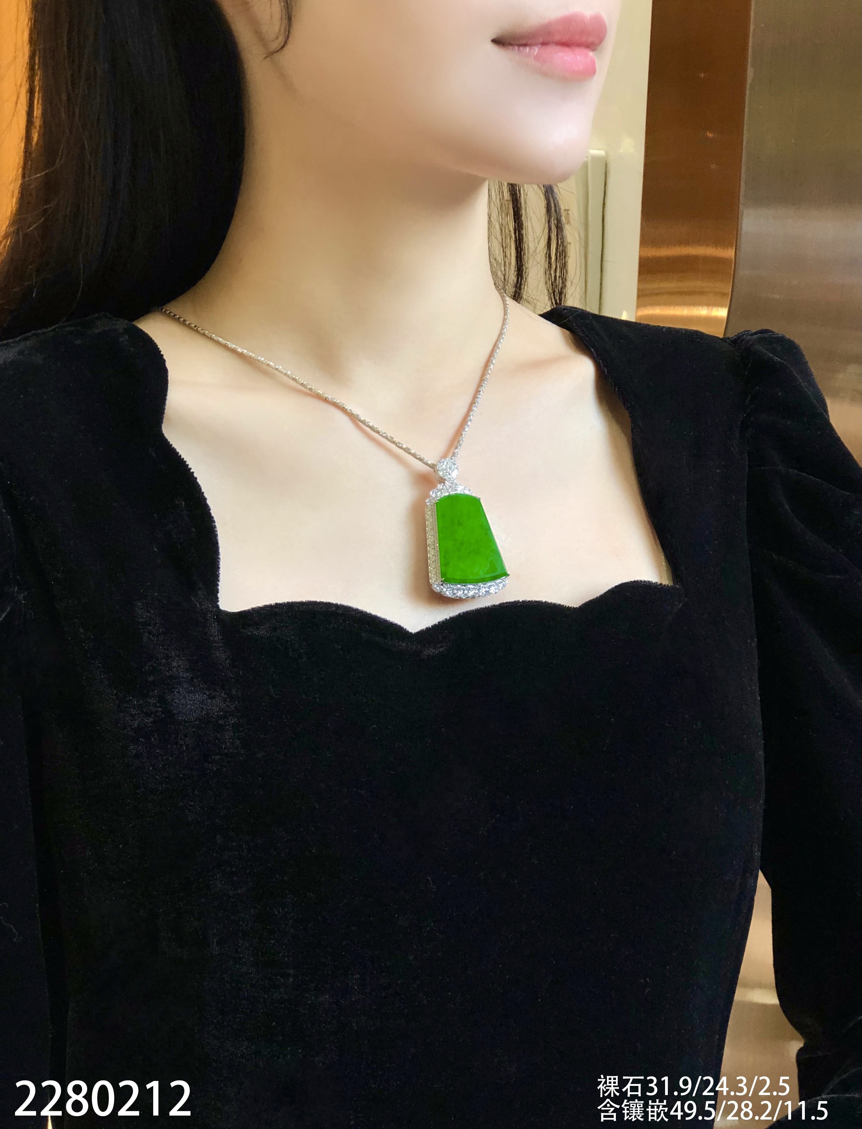2280212,老坑冰帝王绿无事牌吊坠。具体价格微信咨询