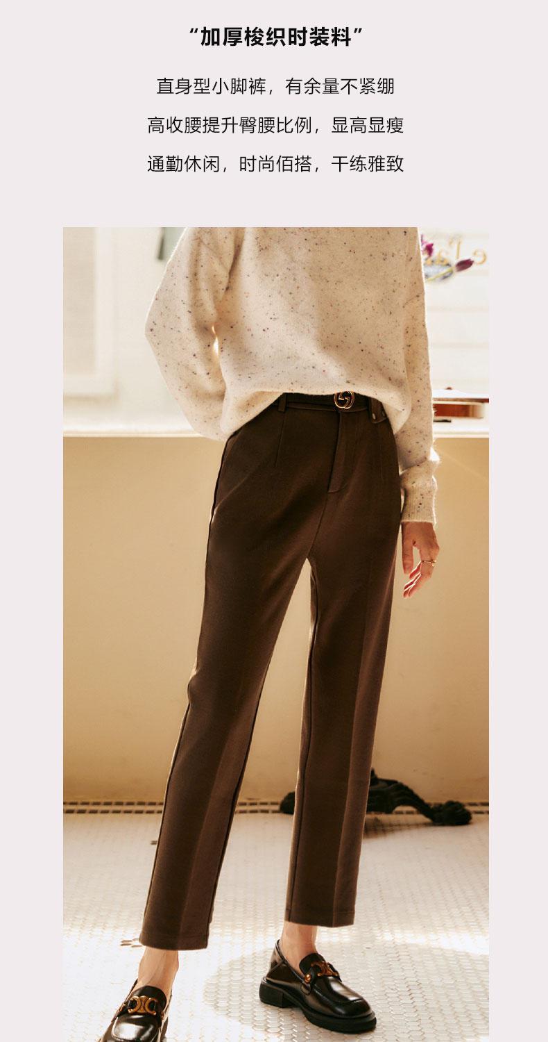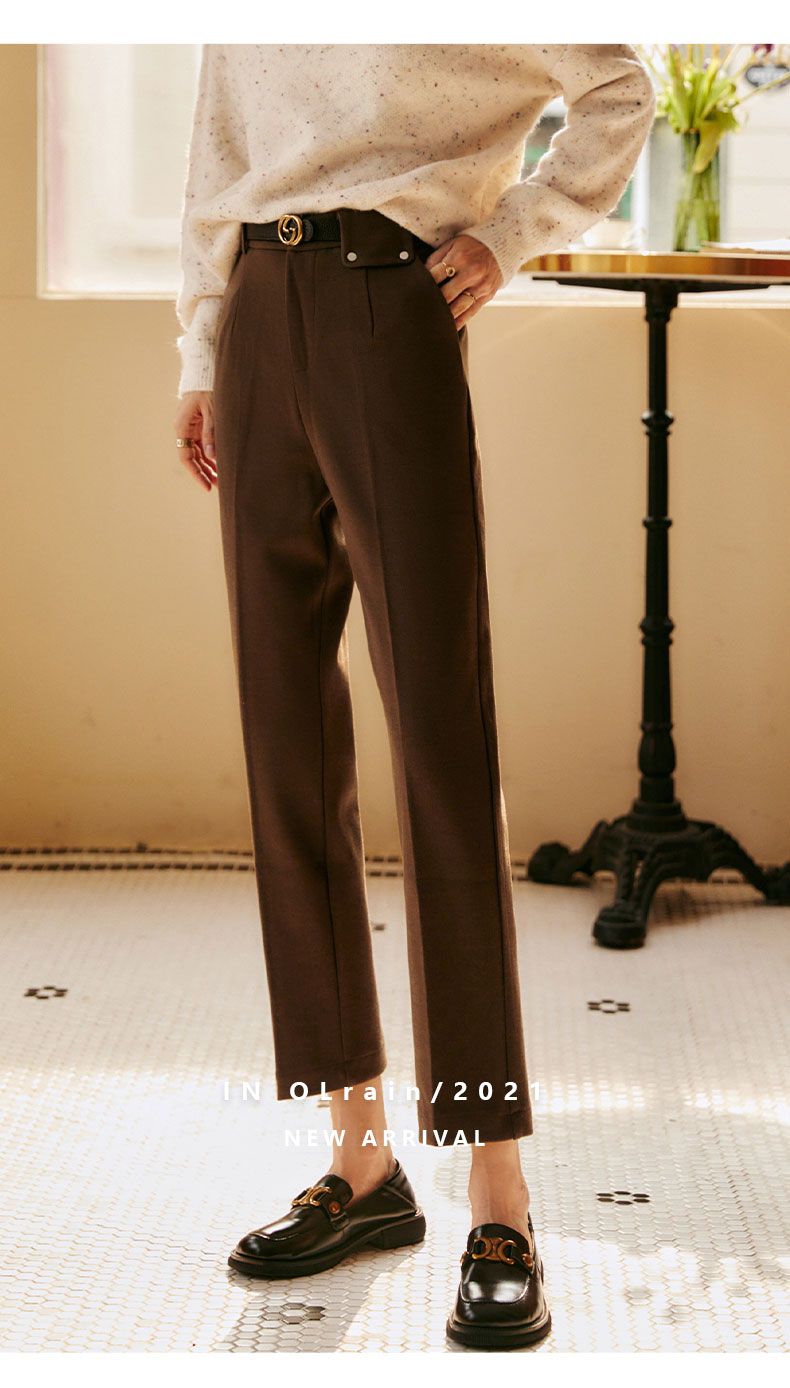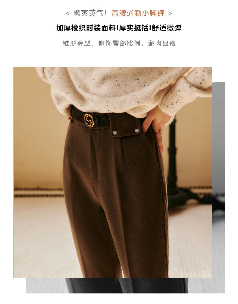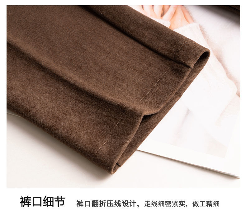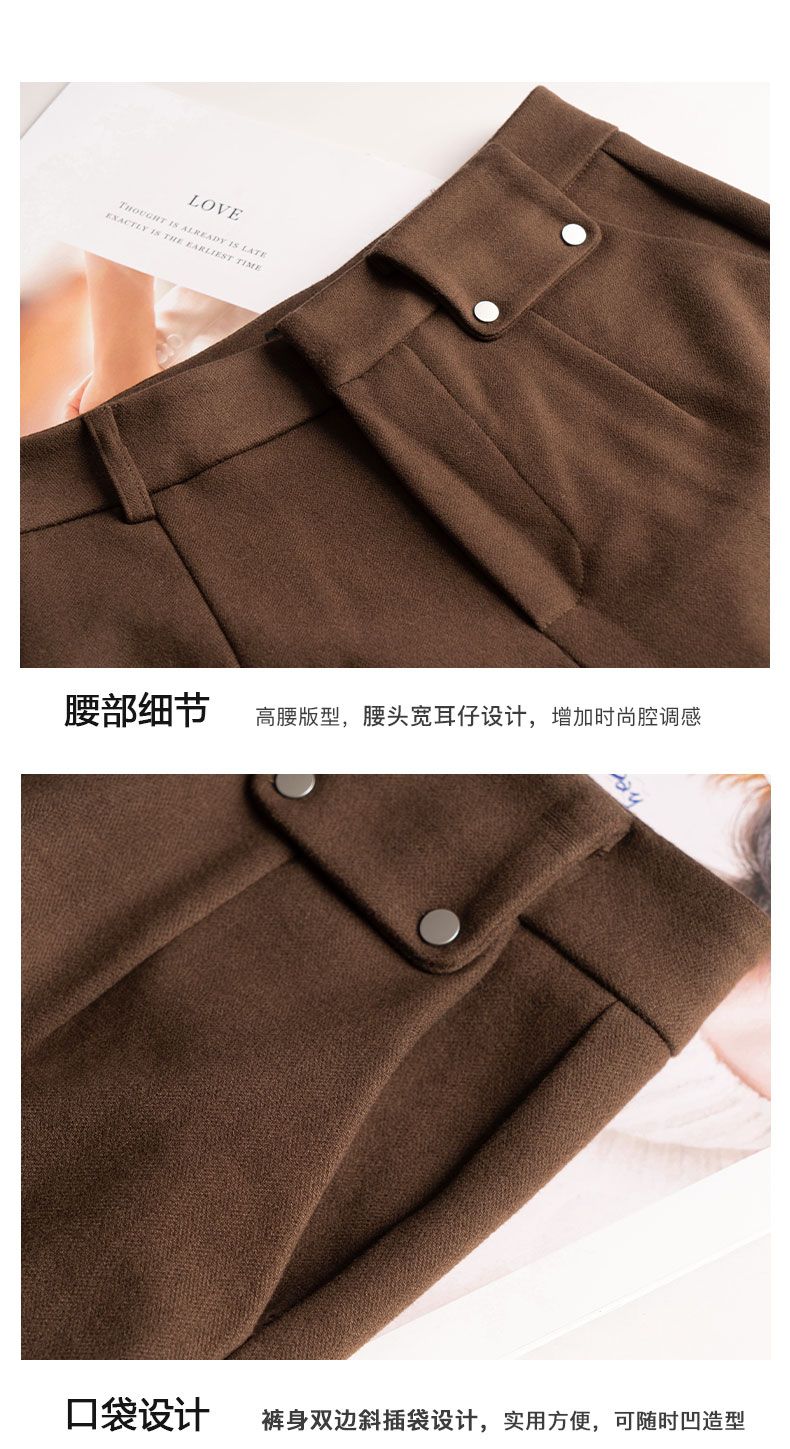 欧芮儿咖色休闲裤女秋冬2021年新款高腰显瘦时尚加绒九分阔腿裤子