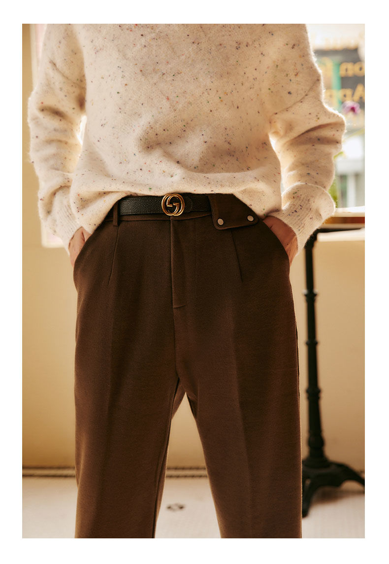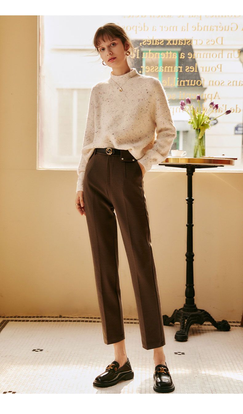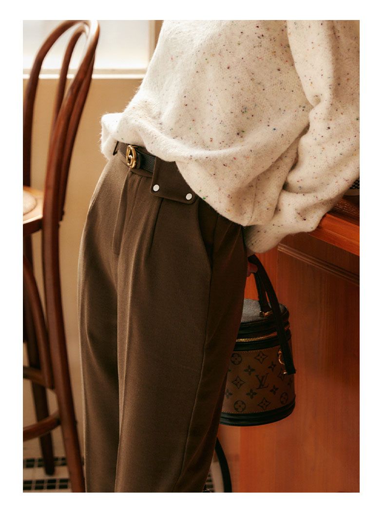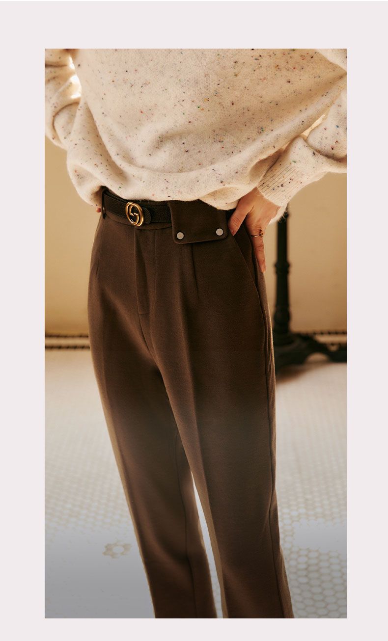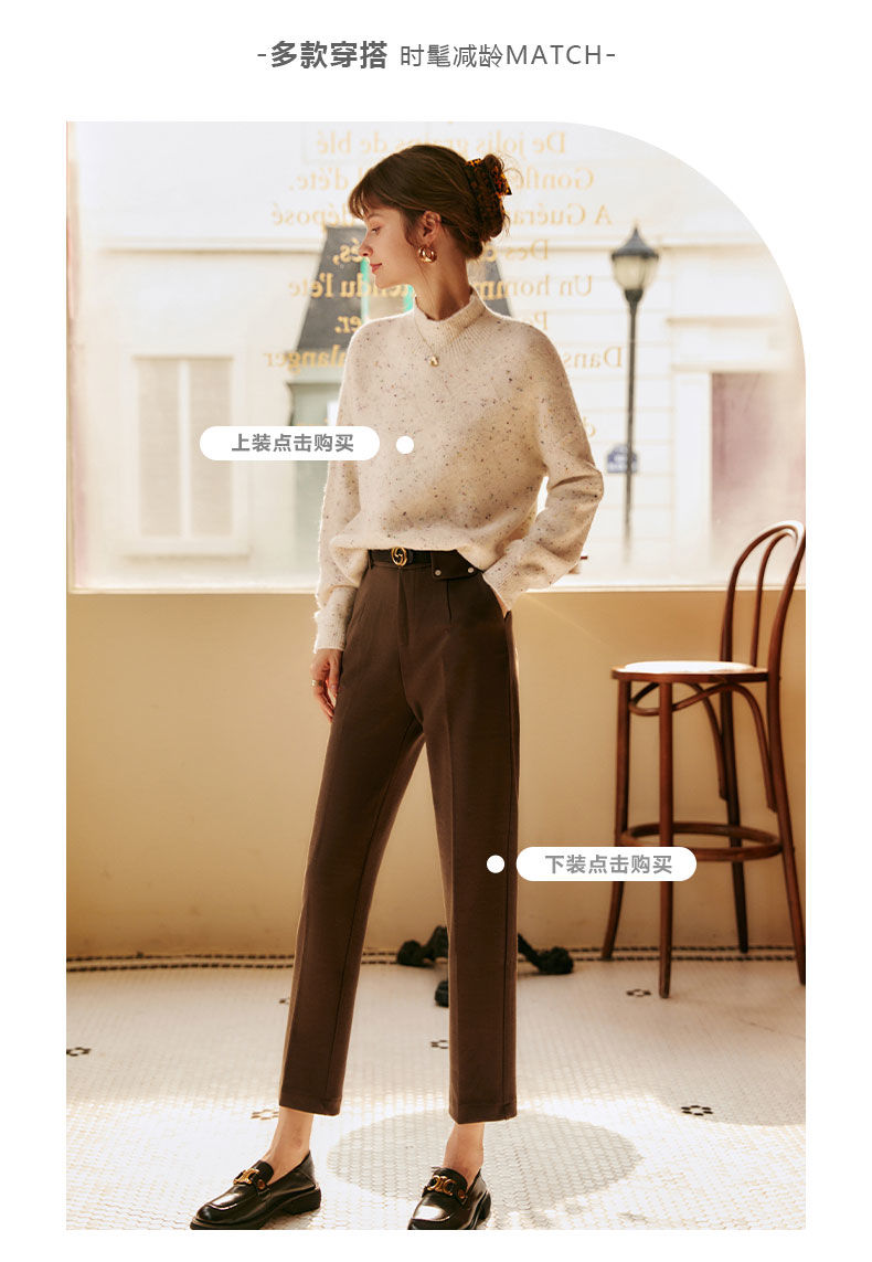 欧芮儿咖色休闲裤女秋冬2021年新款高腰显瘦时尚加绒九分阔腿裤子