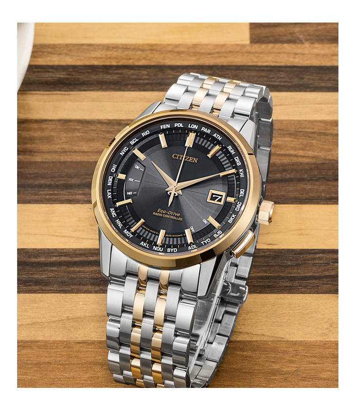 西铁城日本官方正品光动能多局电波商务休闲经典玫瑰金男表CB0156-66E