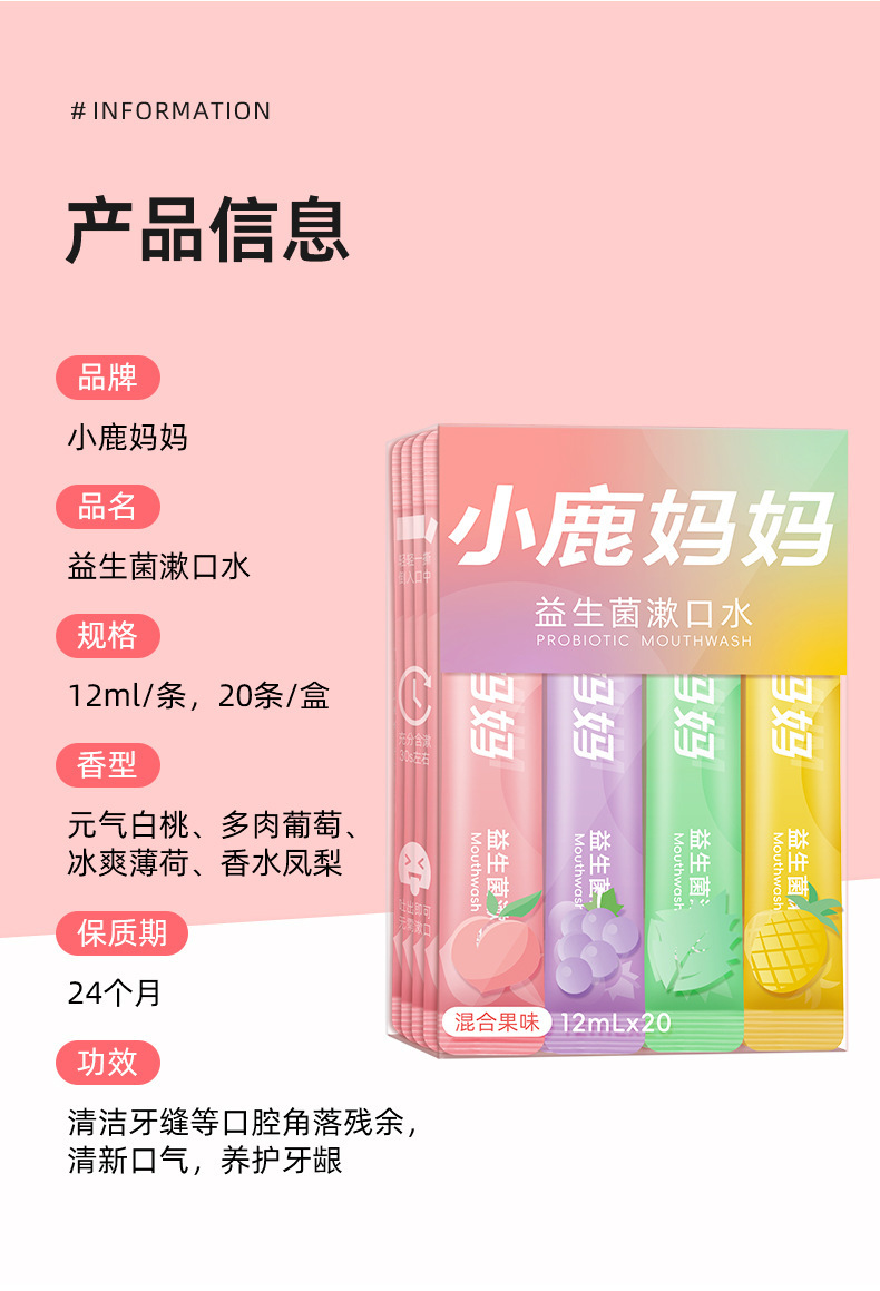 小鹿妈妈益生菌条装漱口水20条*3盒