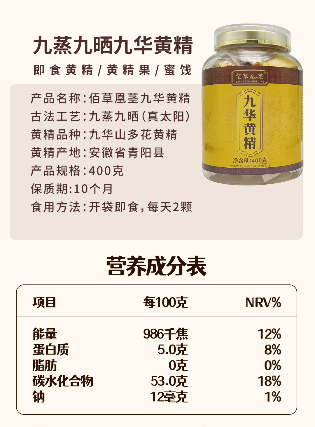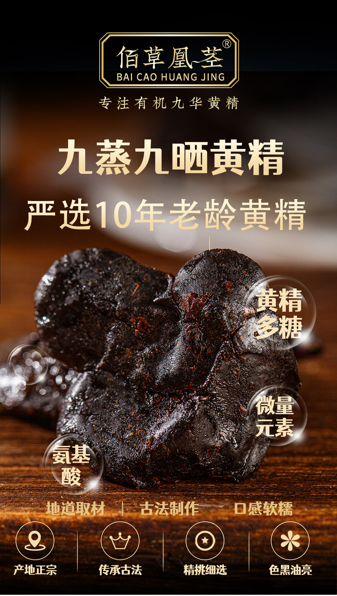 凰茎黄精佰草凰茎九蒸九晒即食黄精无添加零食独立真空包装400g