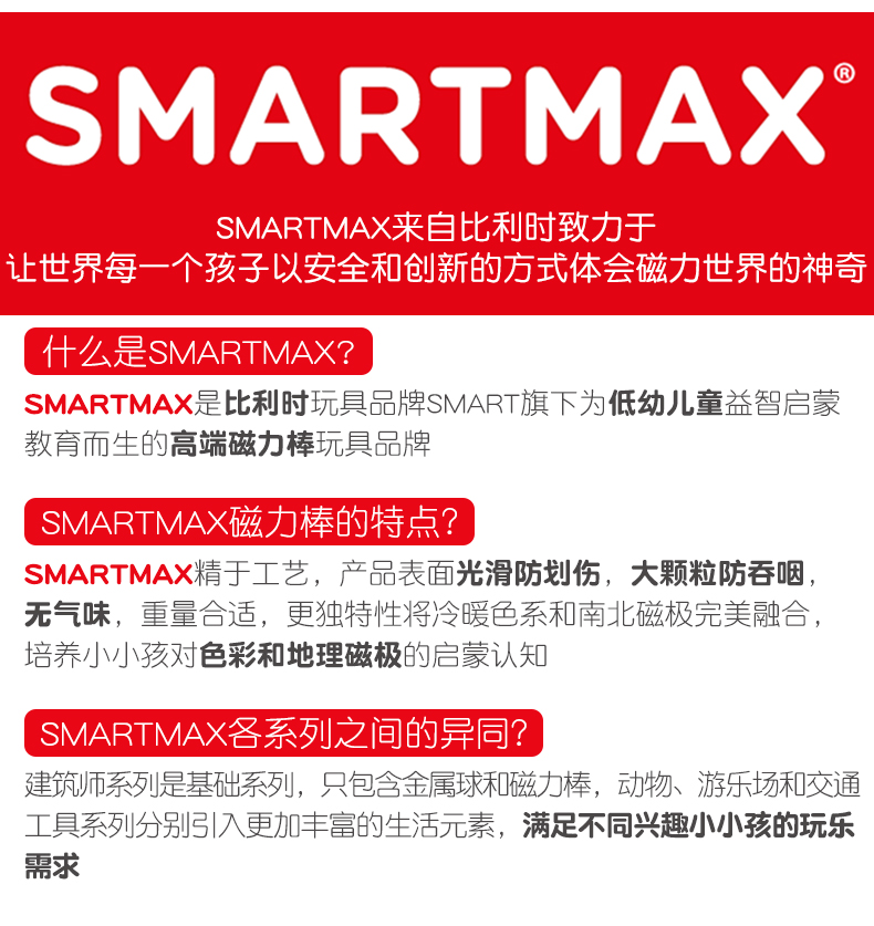 *比利时SMARTMAX入门进阶 积木拼装玩具益智磁力棒大颗粒宝宝启蒙
