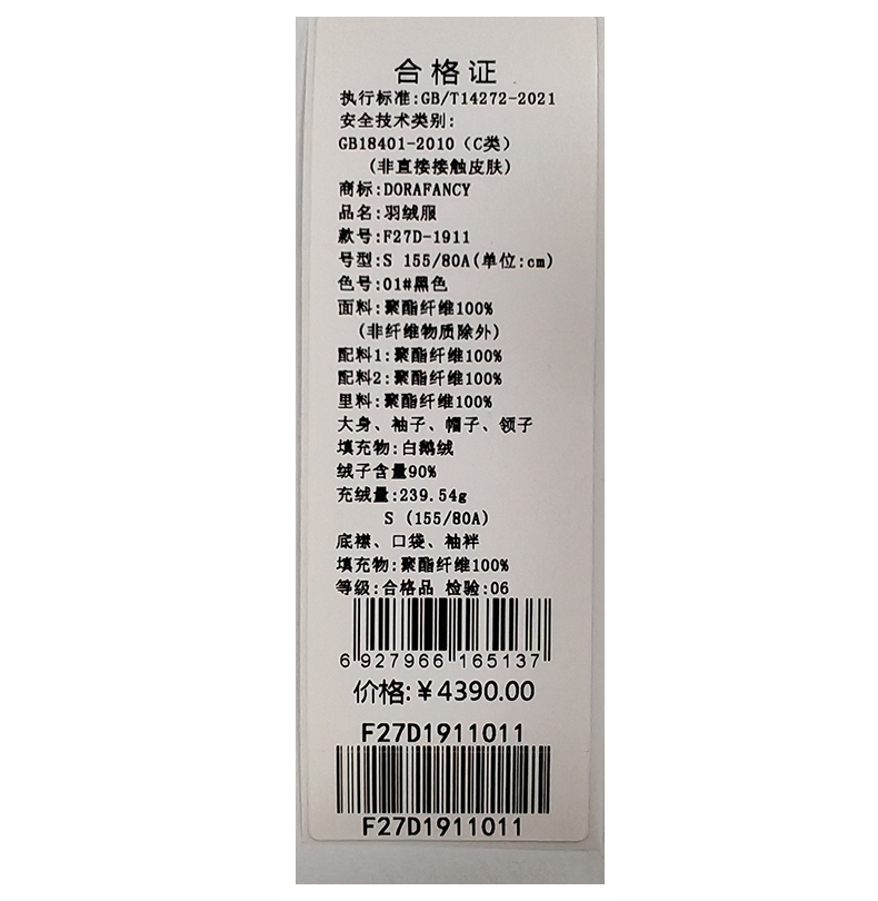 朵拉梵西羽绒服F27D1911