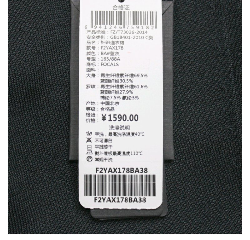 FOCALS福柯斯秋季桑蚕丝七分袖修身印花连衣裙F2YAX178BA