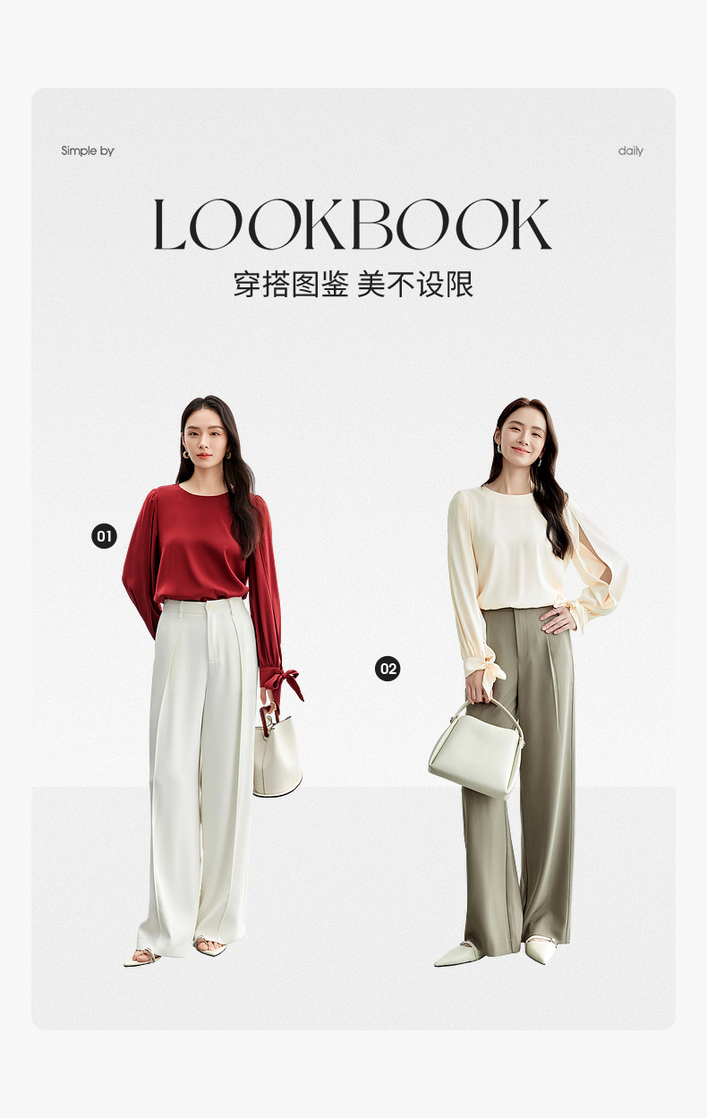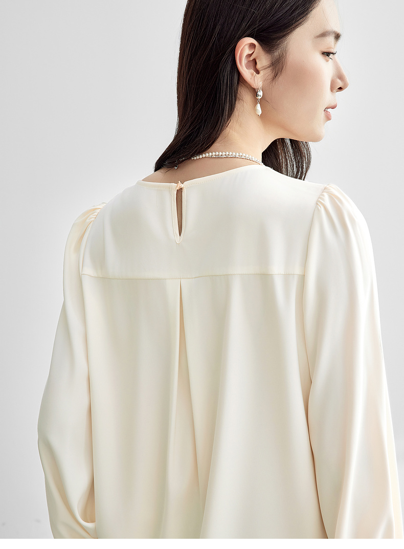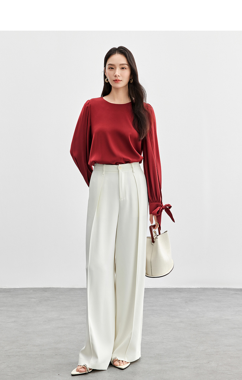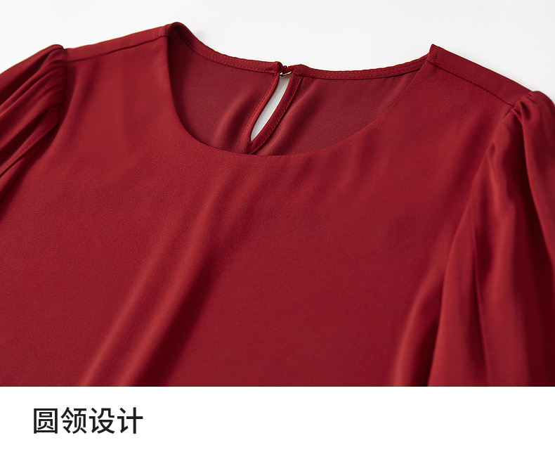 【内购】通勤气质设计感破缝开衩绑带长袖水滴镂空圆领清爽垂感雪纺衫-151V58068