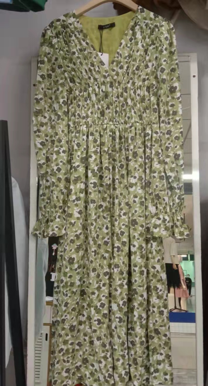 特点:雪纺碎花连衣裙,穿着时尚、收身设计突显身材高挑