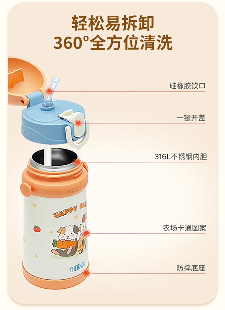 德国Thermos膳魔师 儿童保温杯小恐龙主题幼儿园保温杯吸管直饮杯宝宝水杯水壶 1岁+