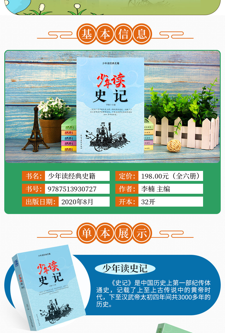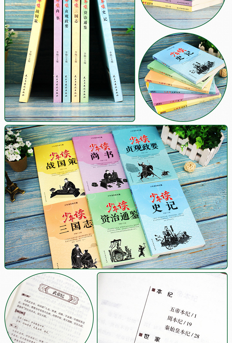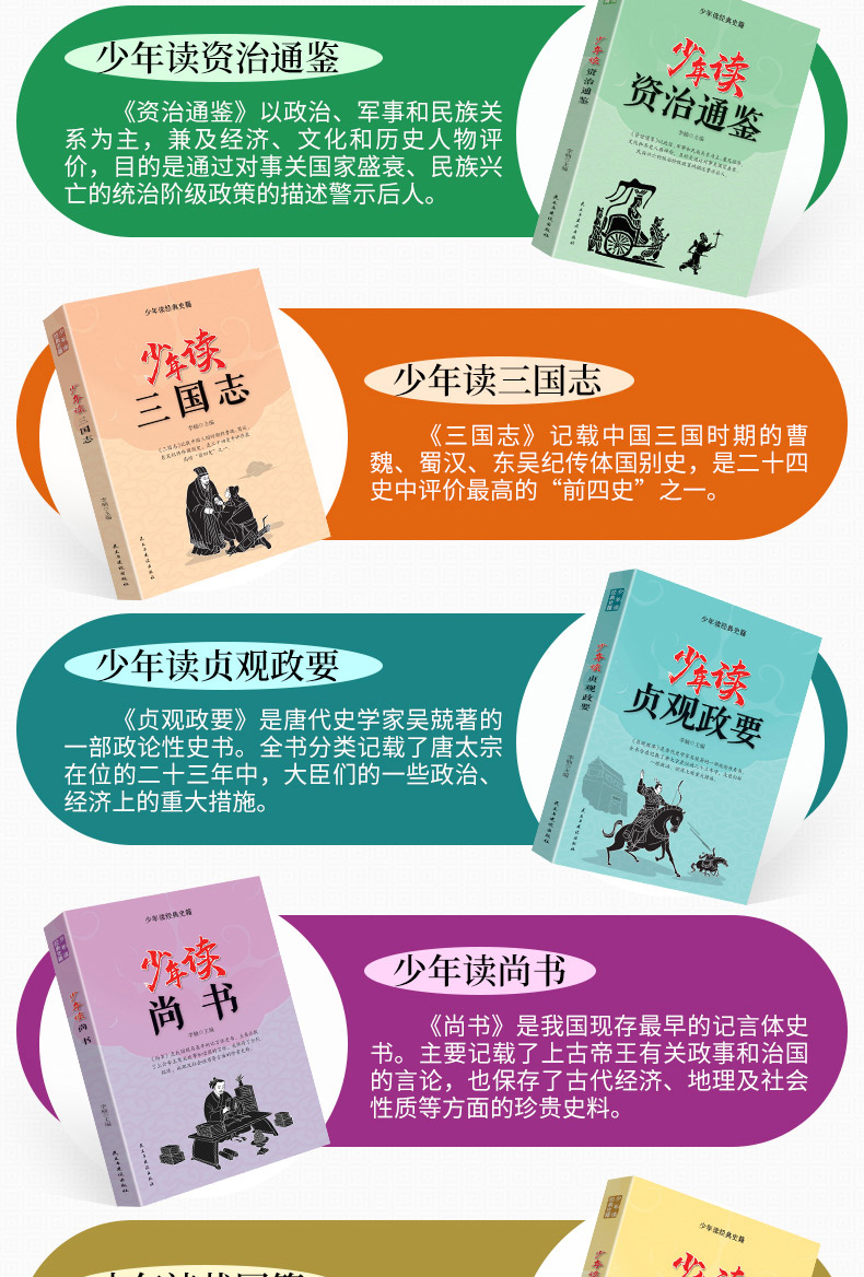 【心如健】少年读史记 4-5-6年级全6册方琼推荐资治通鉴三国志贞观政要战国策小学生国学经典课外书青少年版白话