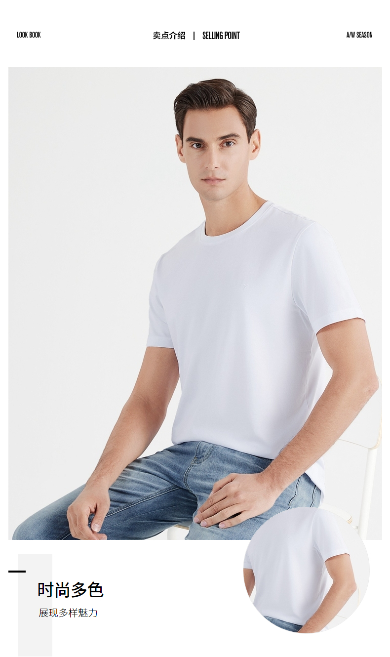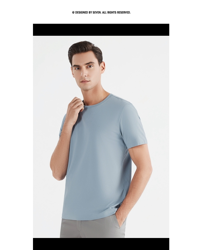 【凉感索罗纳】柒牌短袖t恤男时尚青年休闲百搭弹力圆领薄款体恤122T71440 122T71440