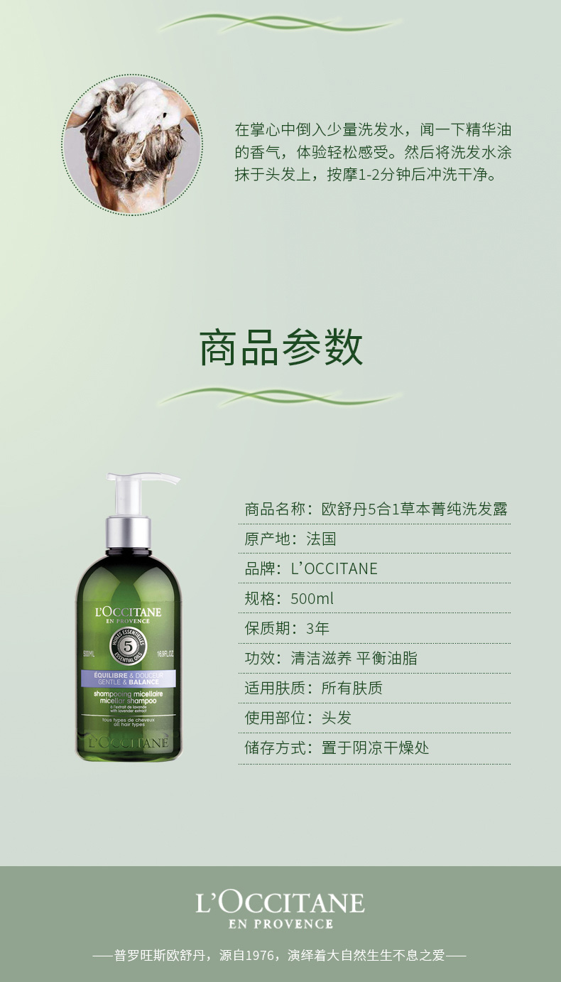 法国欧舒丹5合1草本菁纯平衡洗发露500ml 深入头皮毛囊温和清洁油脂117684