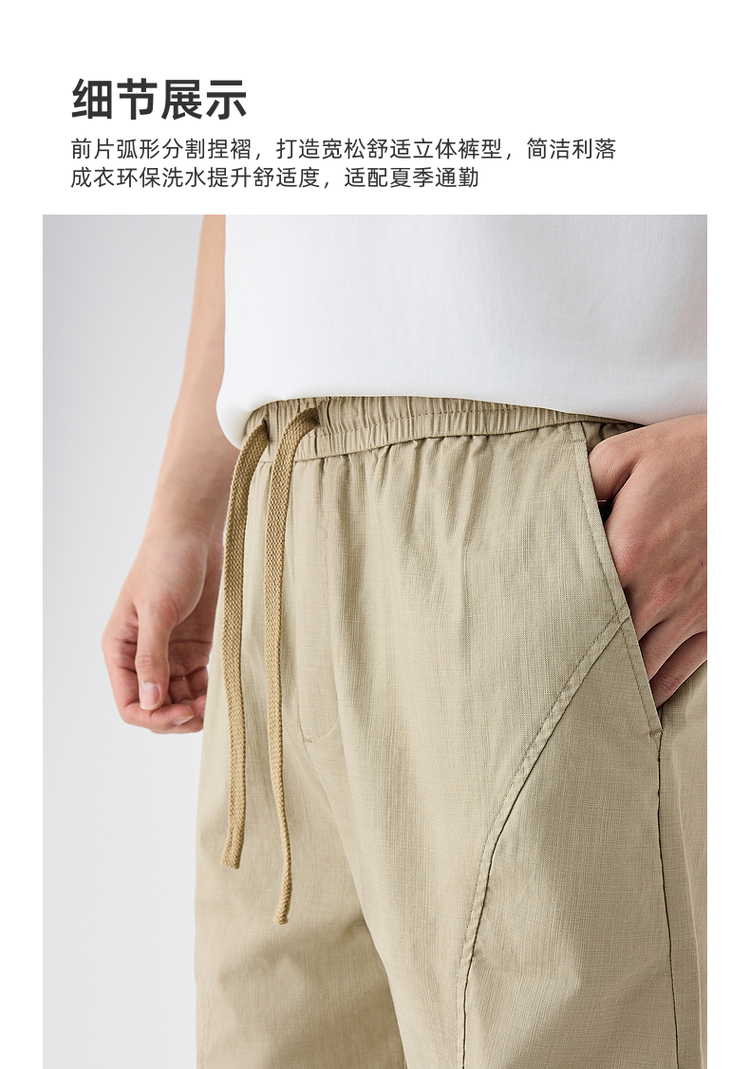 墨麦客棉亚麻休闲五分裤男士2025夏季新款简约宽松直筒薄款短裤男
