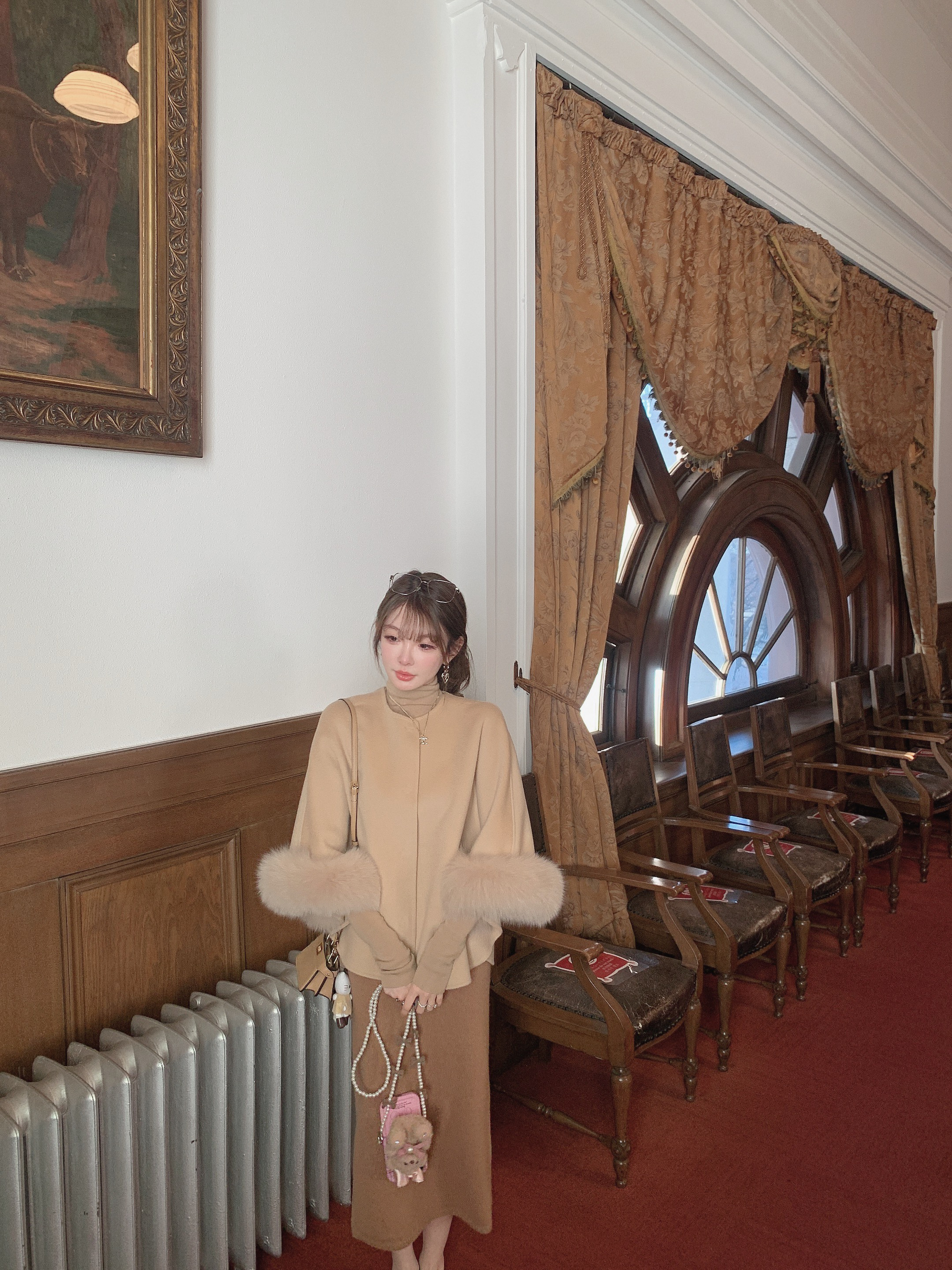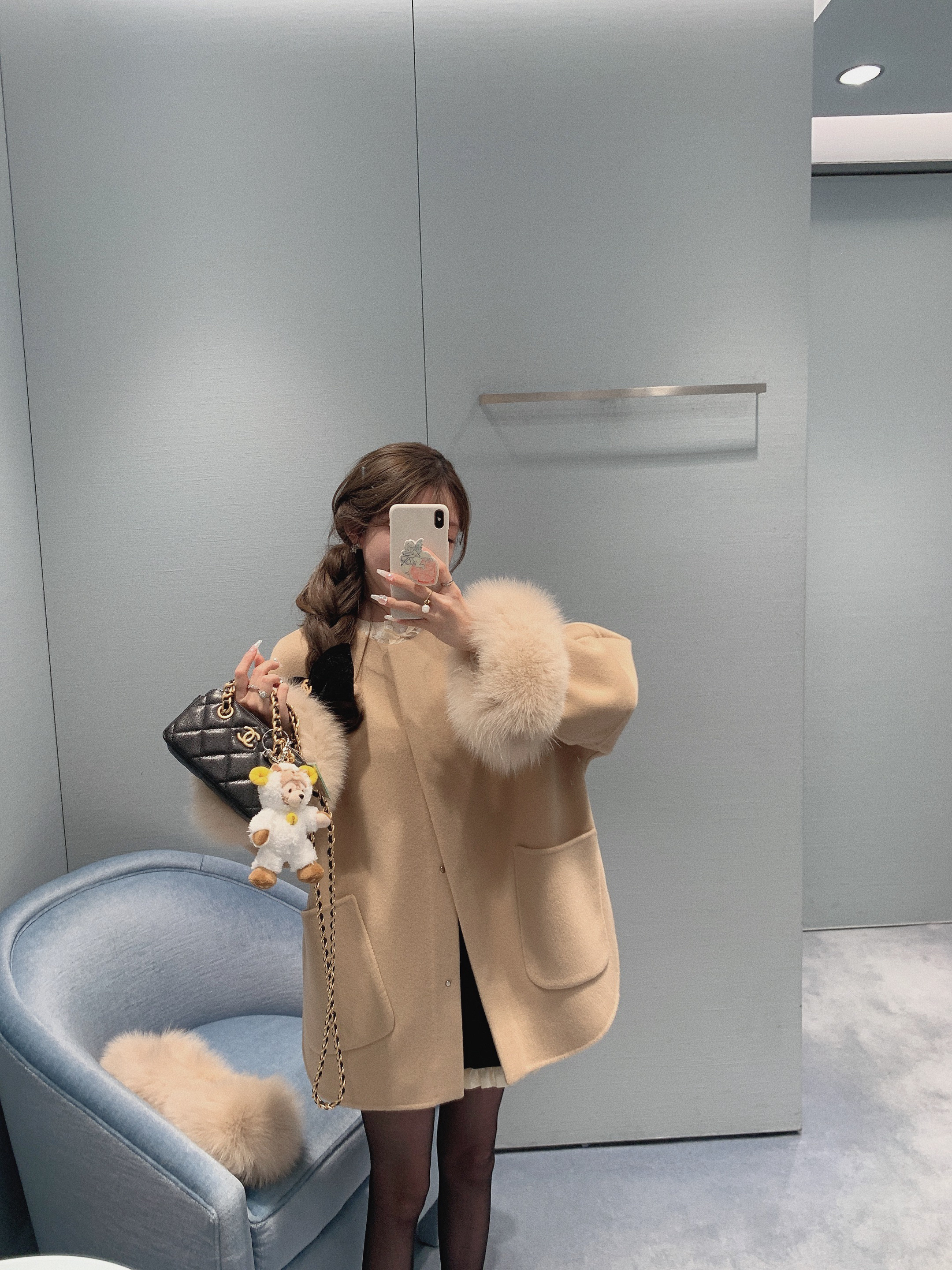 金蘑菇菇 伦敦甜心/娇贵少女氛围 狐狸毛毛领外套