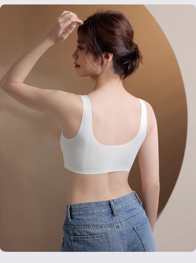 条纹质感镂空网纱固定杯背心内衣53085