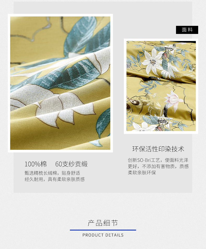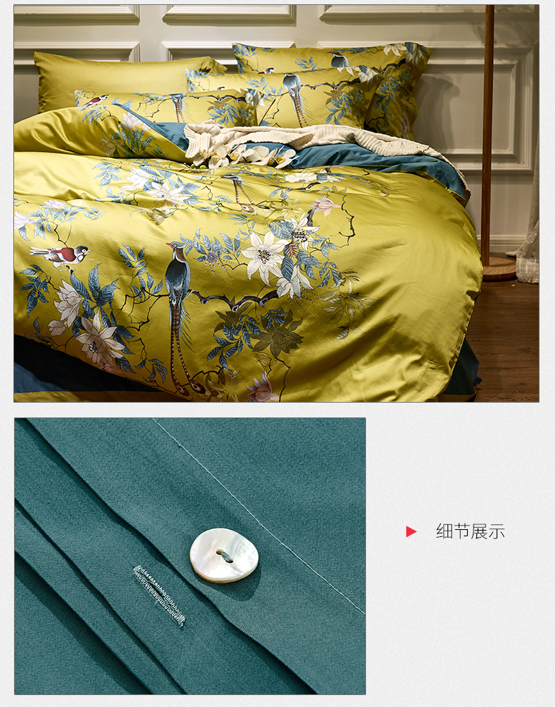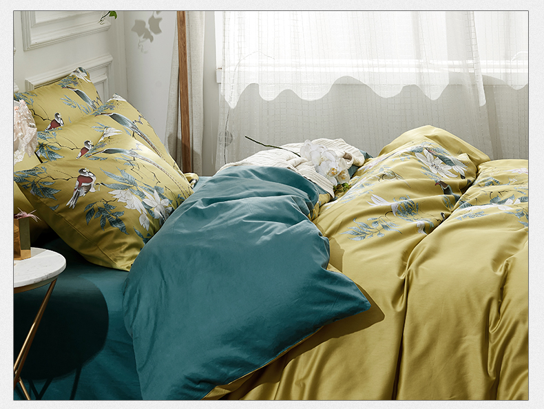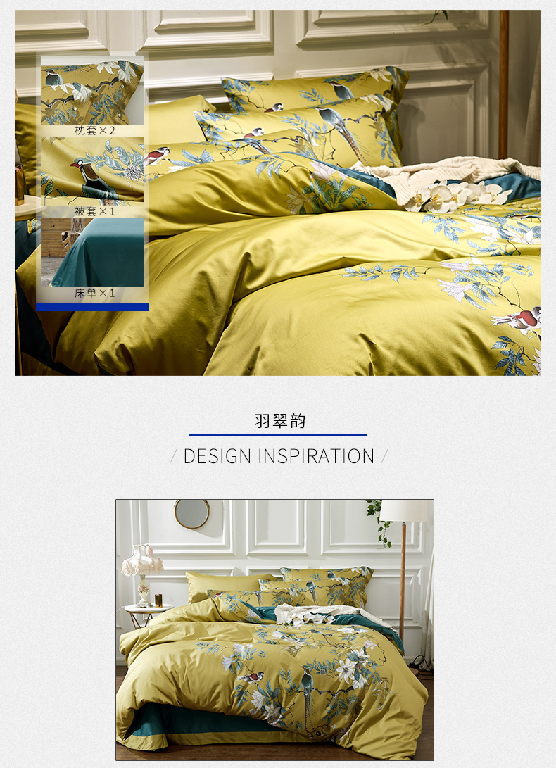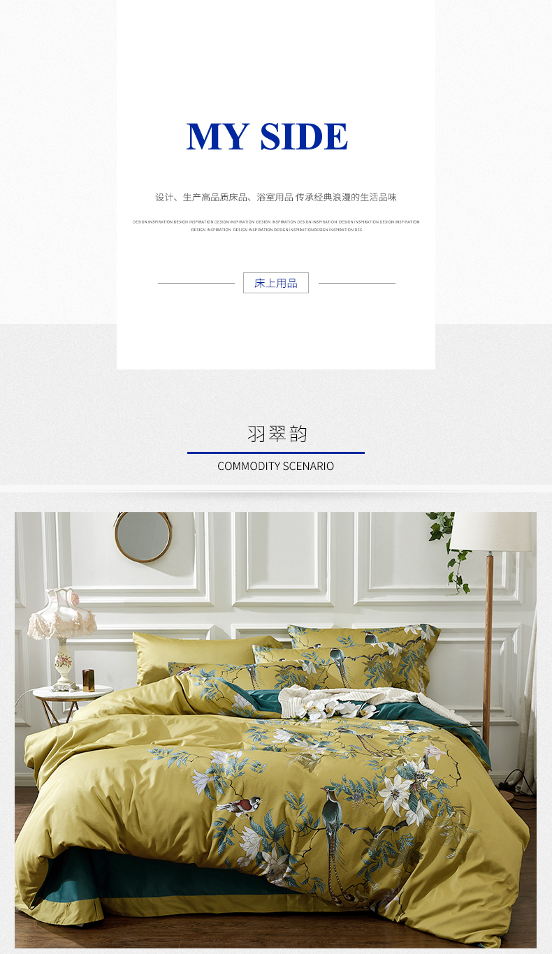 My Side 2020春夏新品全棉印花60支纱贡缎四件套 床单被套4件套 环保印染不掉色-羽翠韵