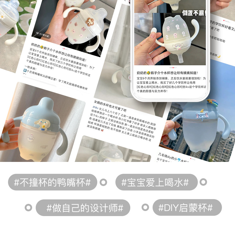 IKV爱咔威硅胶鸭嘴学饮杯婴幼儿奶瓶宝宝喝水6个月吸管儿童学饮杯