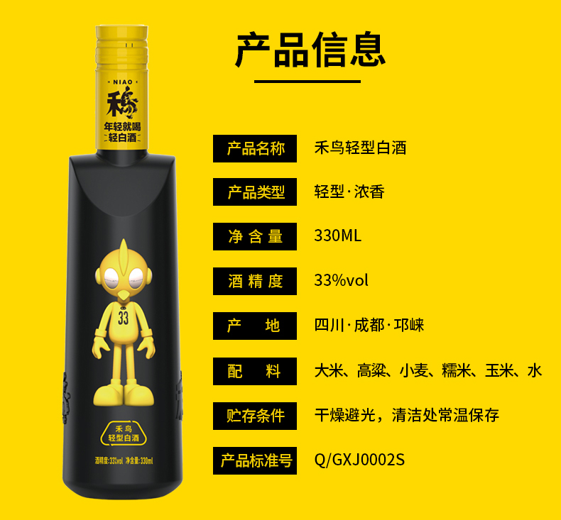 【禾鸟】浓香33度-【轻型白酒-330ML*12瓶】-整箱装
