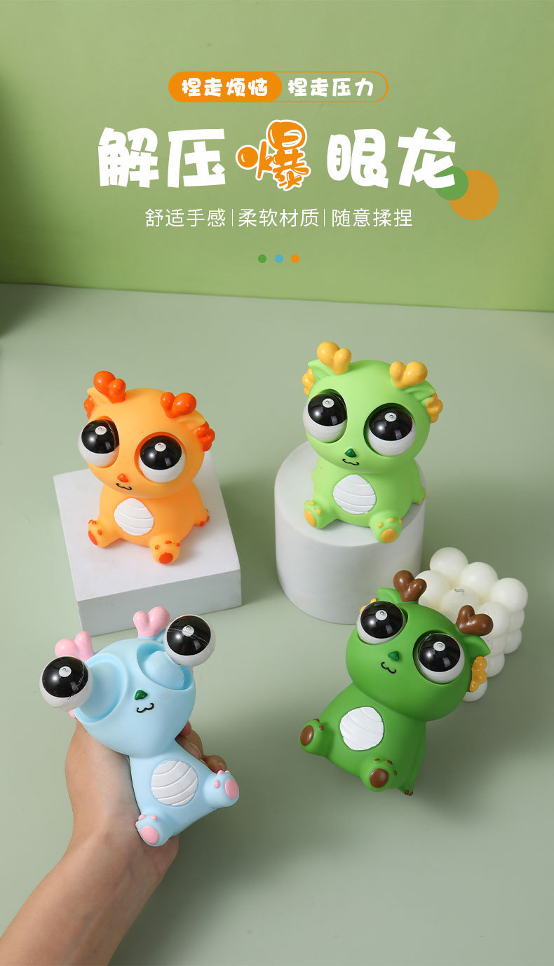 【缓解压力❗柔软材质】立体大爆眼龙抖音爆款恐龙龙年解压玩具捏捏乐大瞪眼搞怪发泄整蛊。xa