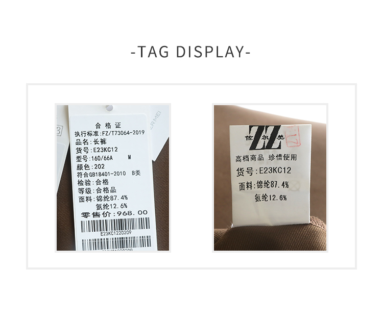 佐尔美春秋新款 时尚百搭长裤女E23KC12