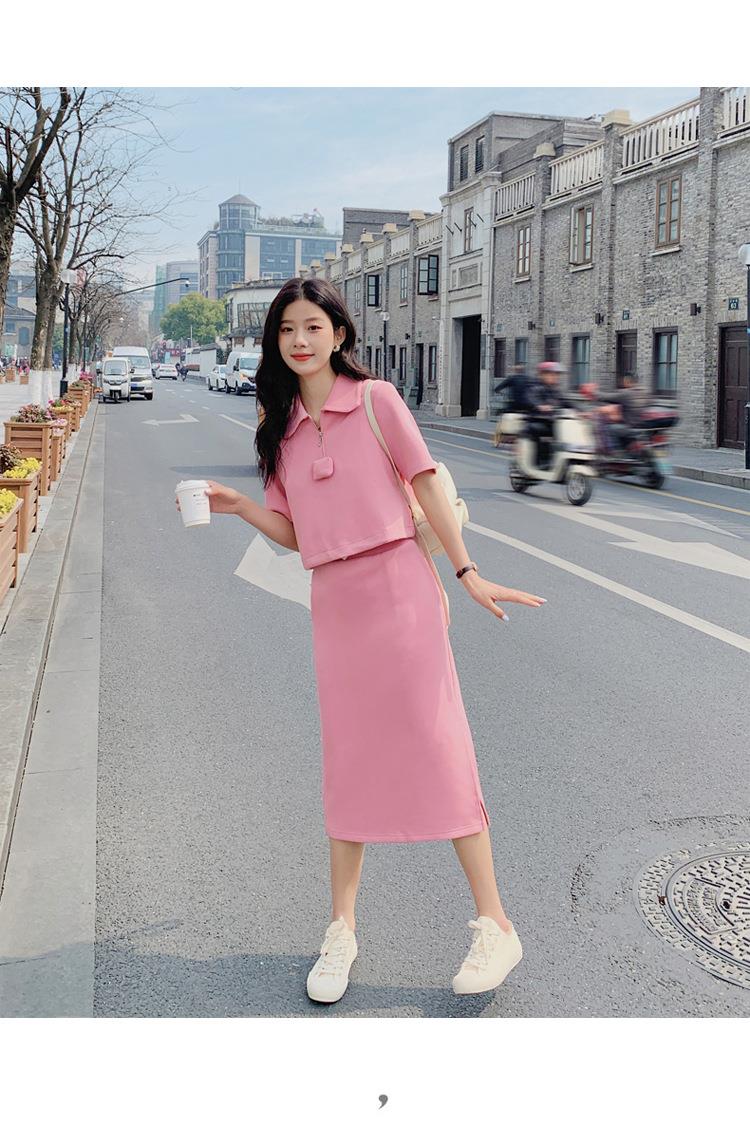 2023夏季新款女装时尚休闲短款T恤+半身裙两件套温柔风休闲套装女