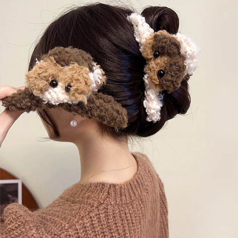 【穿搭点睛神器❗️拯救扁塌头型】卷毛可爱小狗抓夹秋冬毛绒发夹后脑勺2025新款高端大号鲨鱼夹。jb