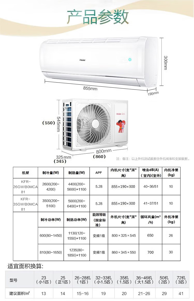 海尔(Haier) 1.5匹 一级能效 变频冷暖 壁挂式空调 KFR-35GW/B0MCA81