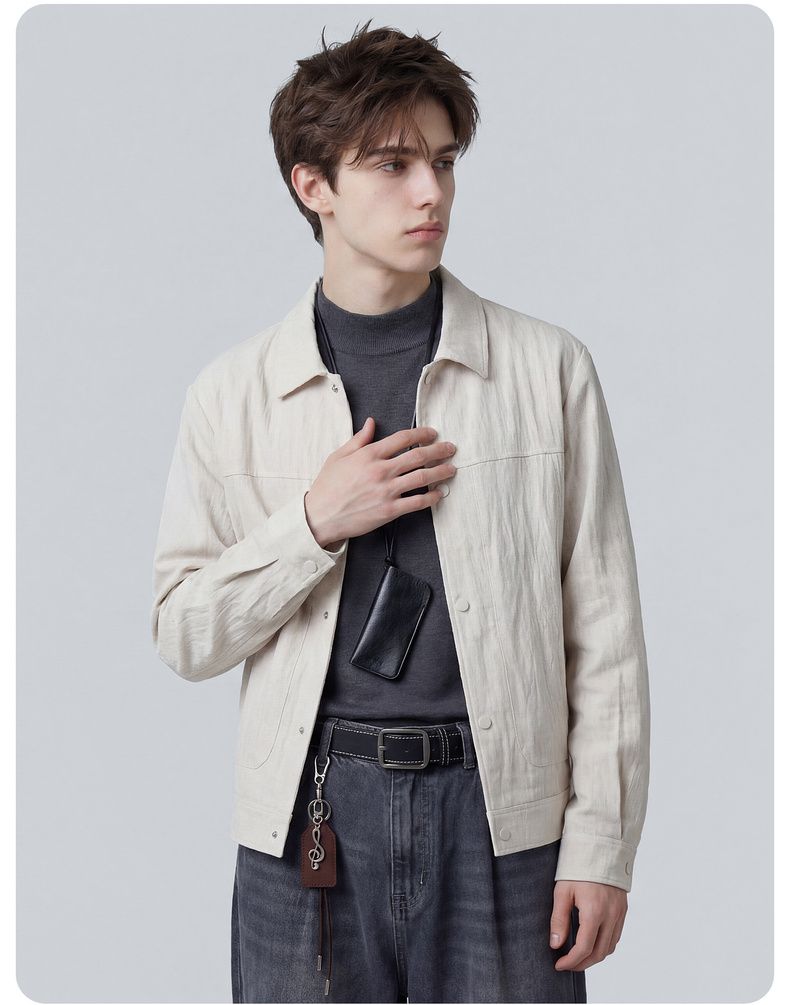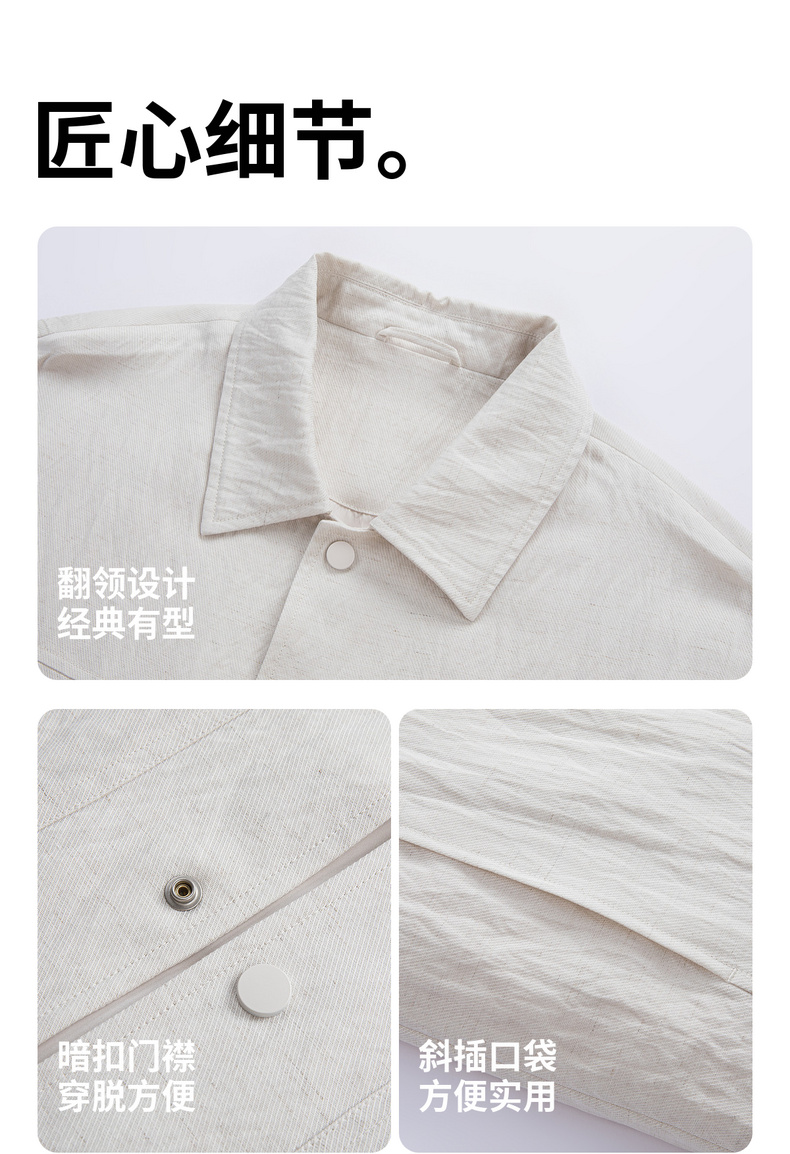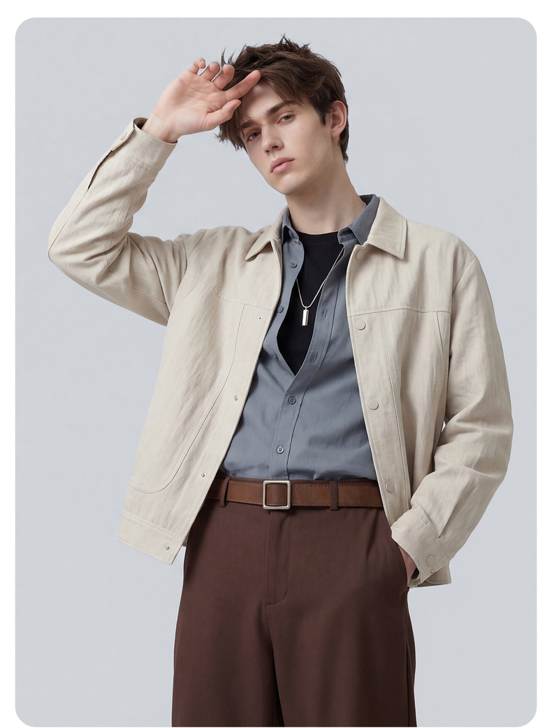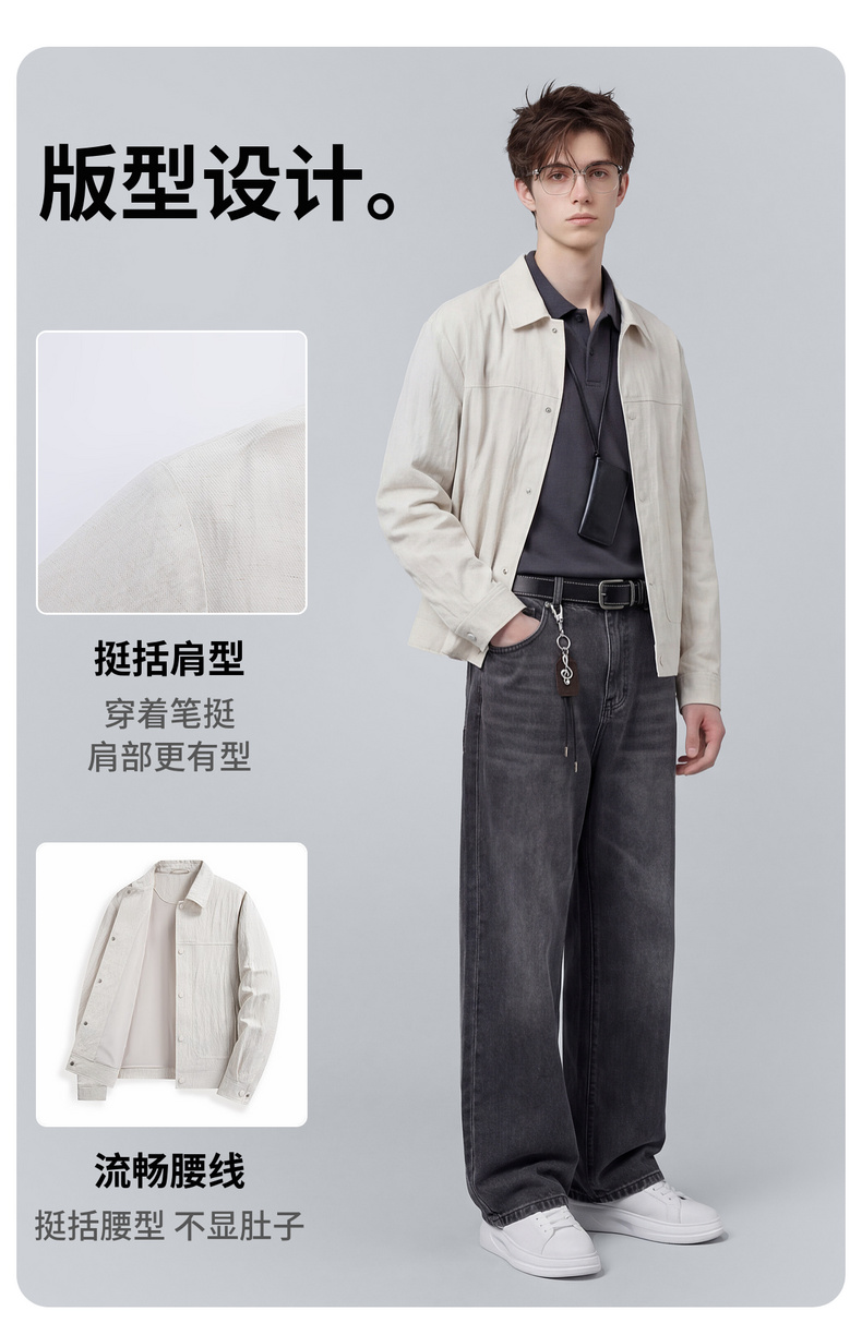 【含亚麻】圣得西工装翻领夹克男士2026新款外套春季简约通勤上衣