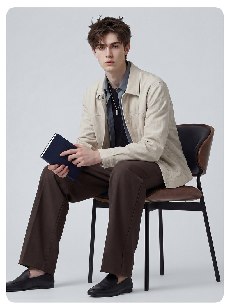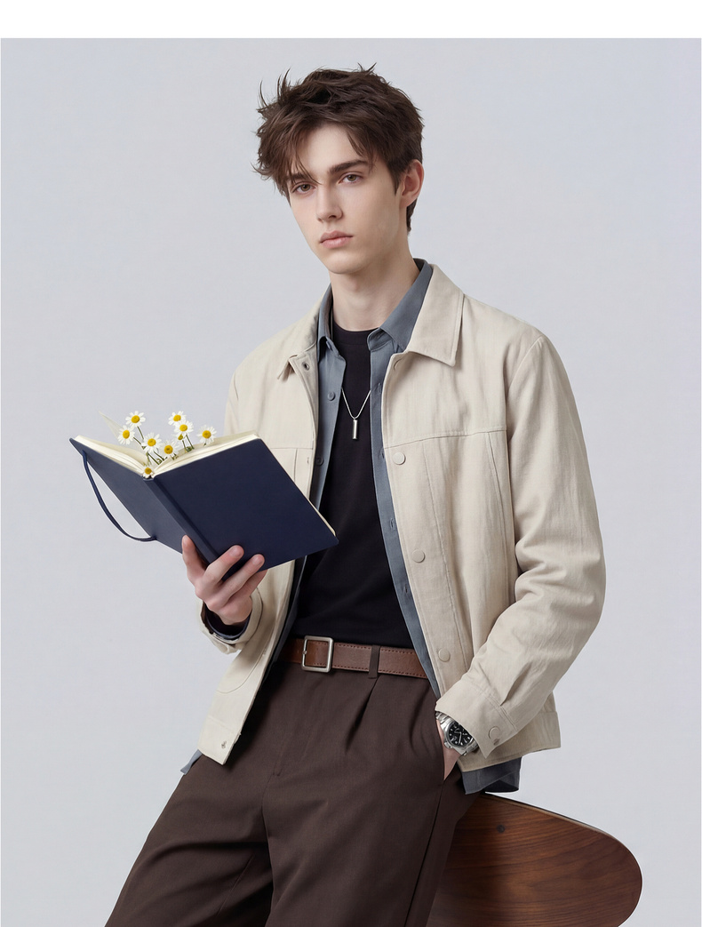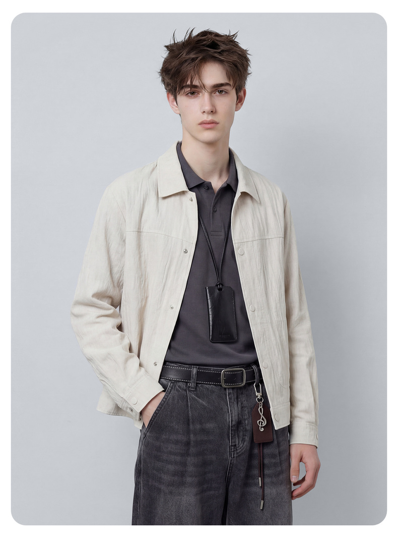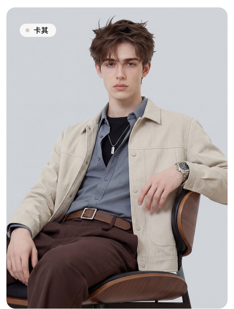 【含亚麻】圣得西工装翻领夹克男士2026新款外套春季简约通勤上衣