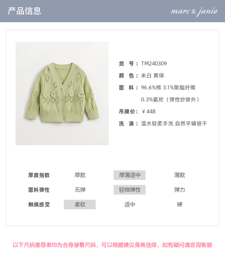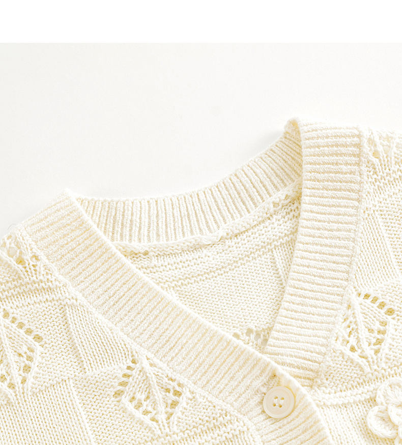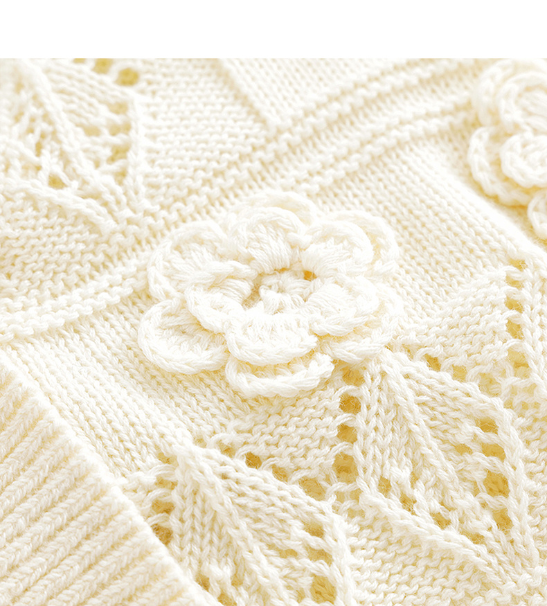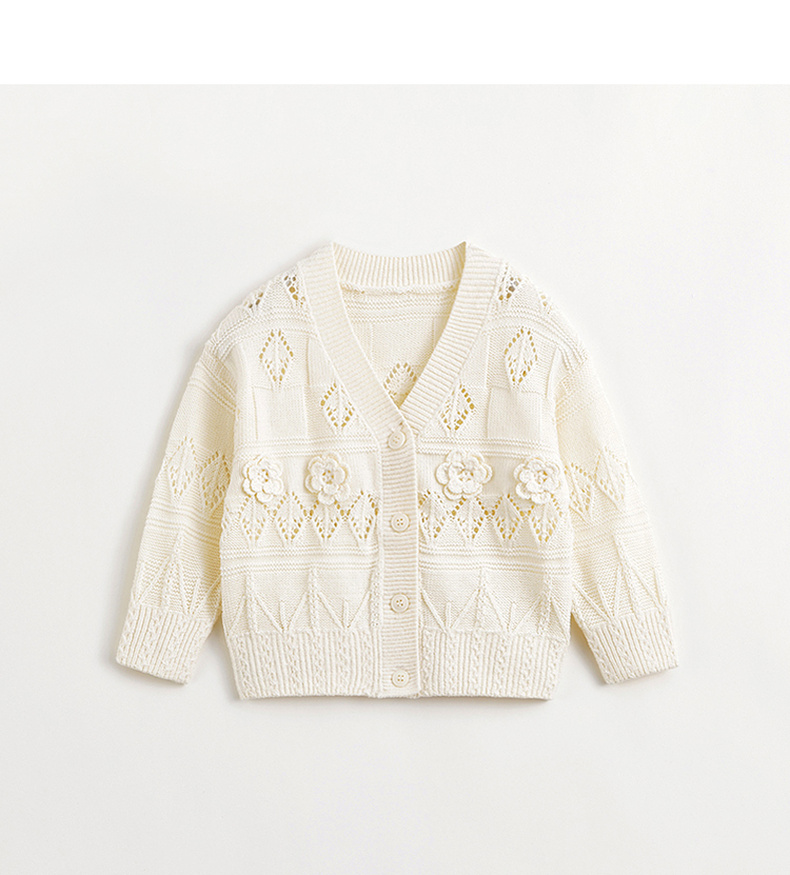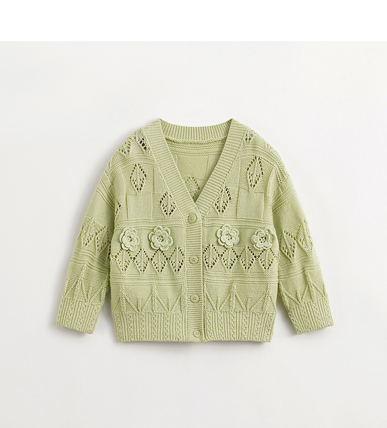 马克珍妮女童立体小花V领针织开衫儿童上衣2024年春装新款240309