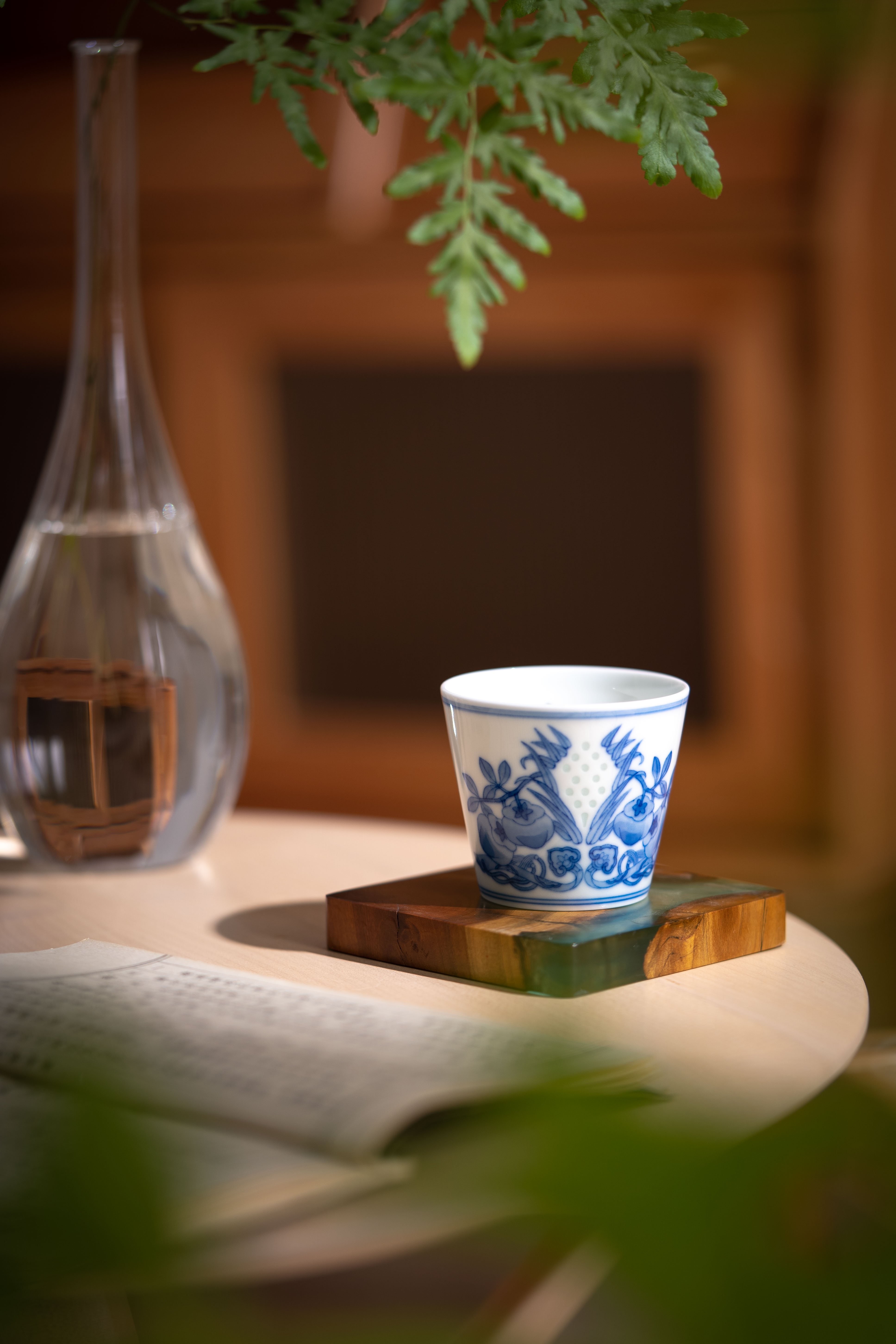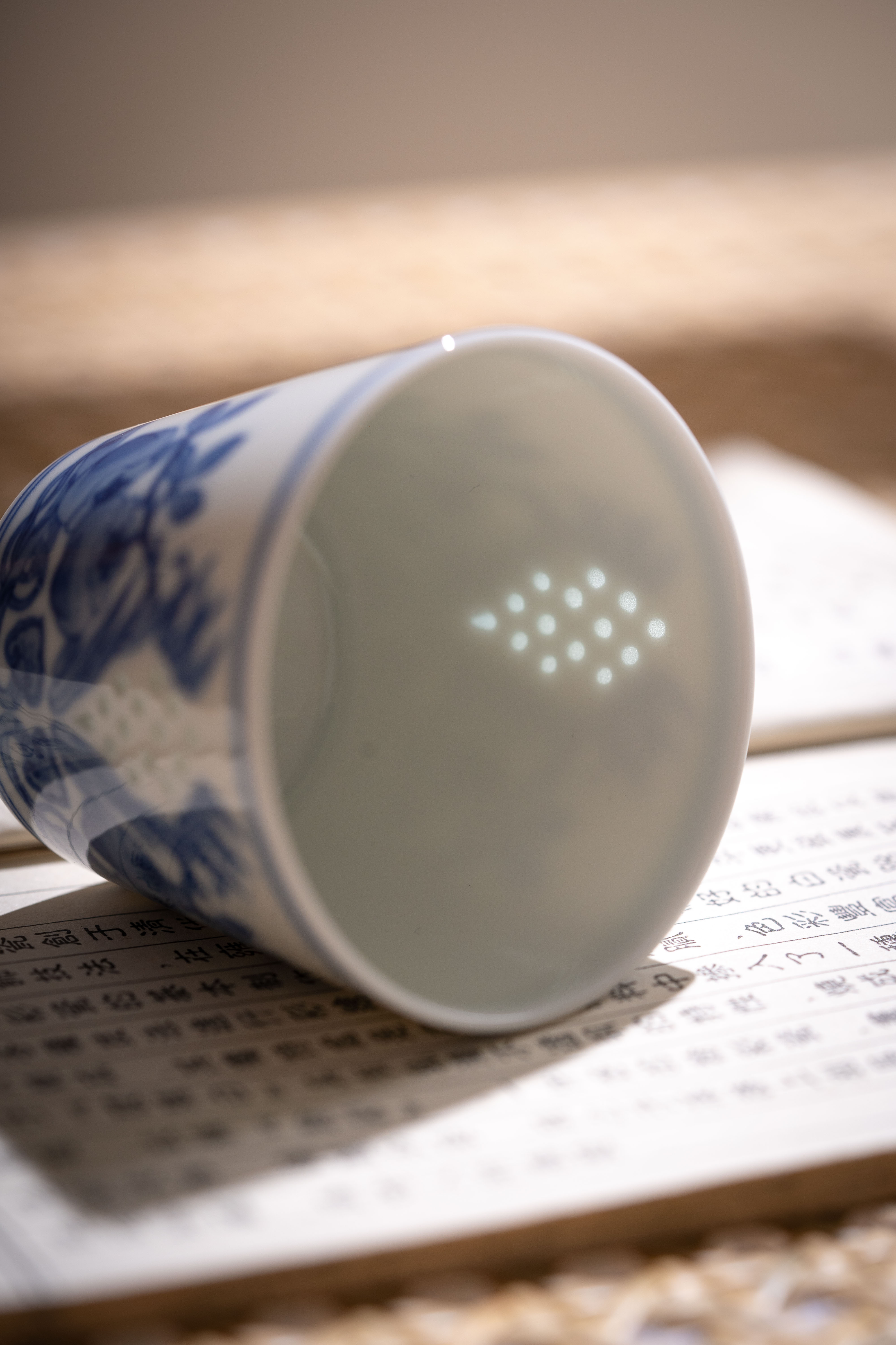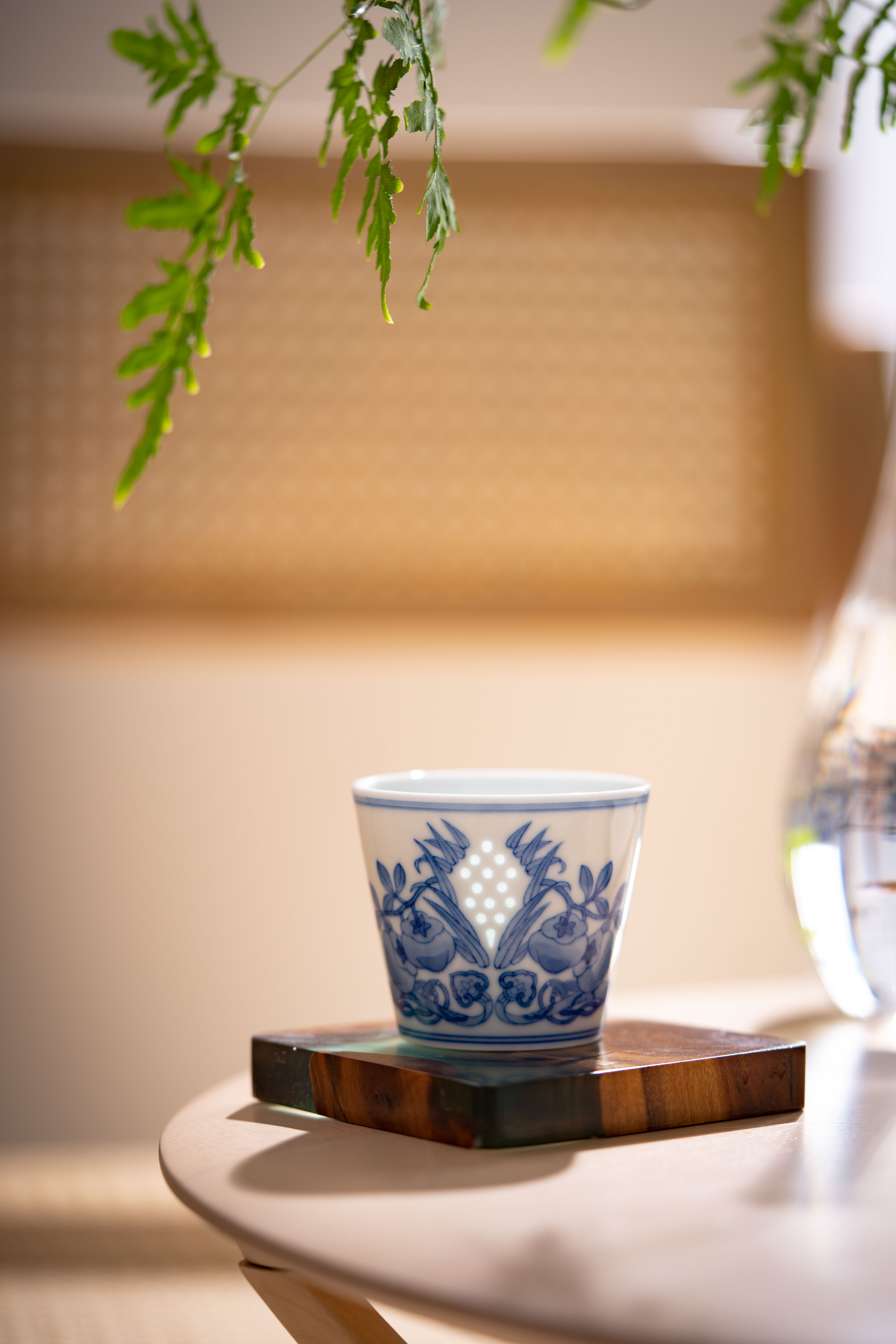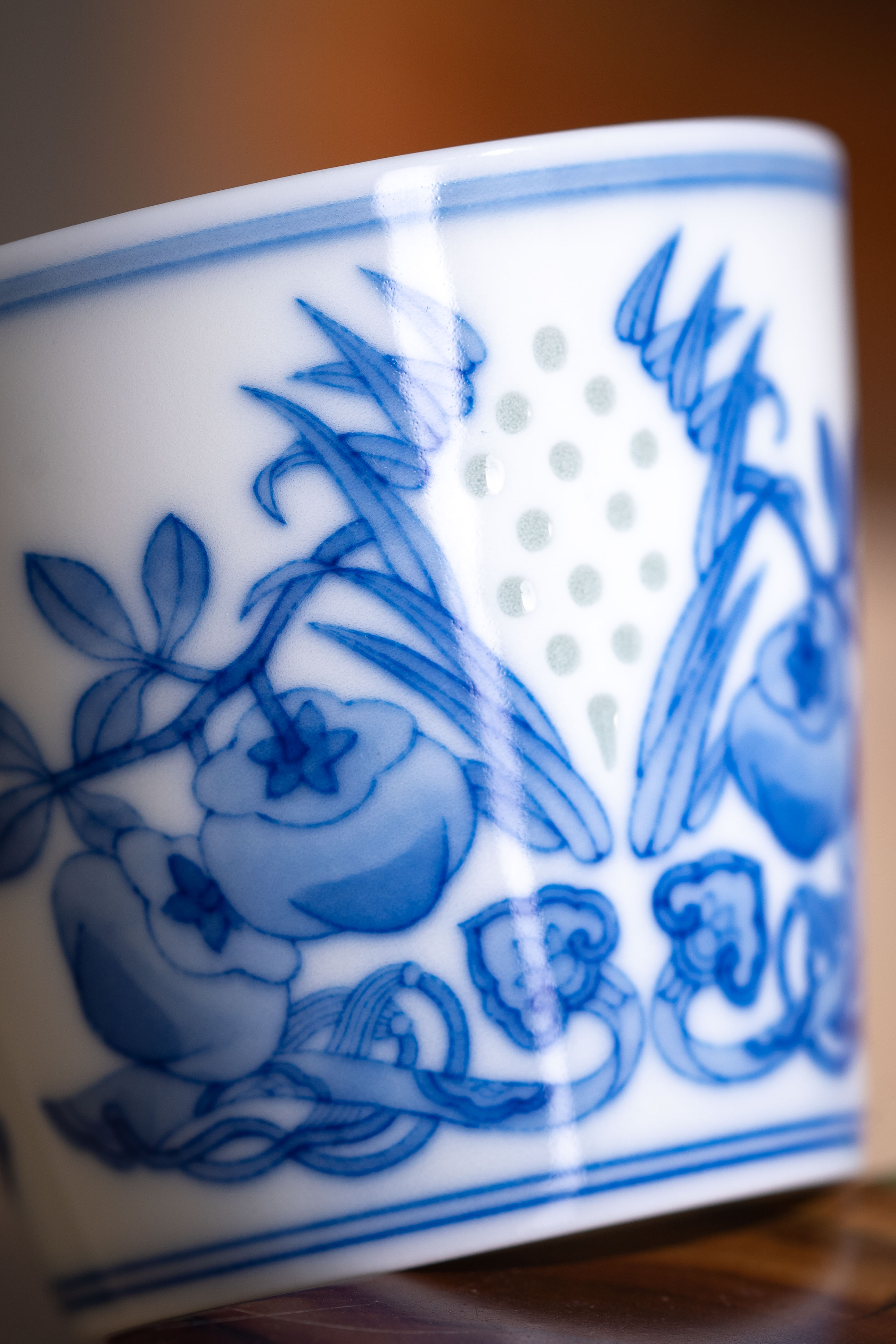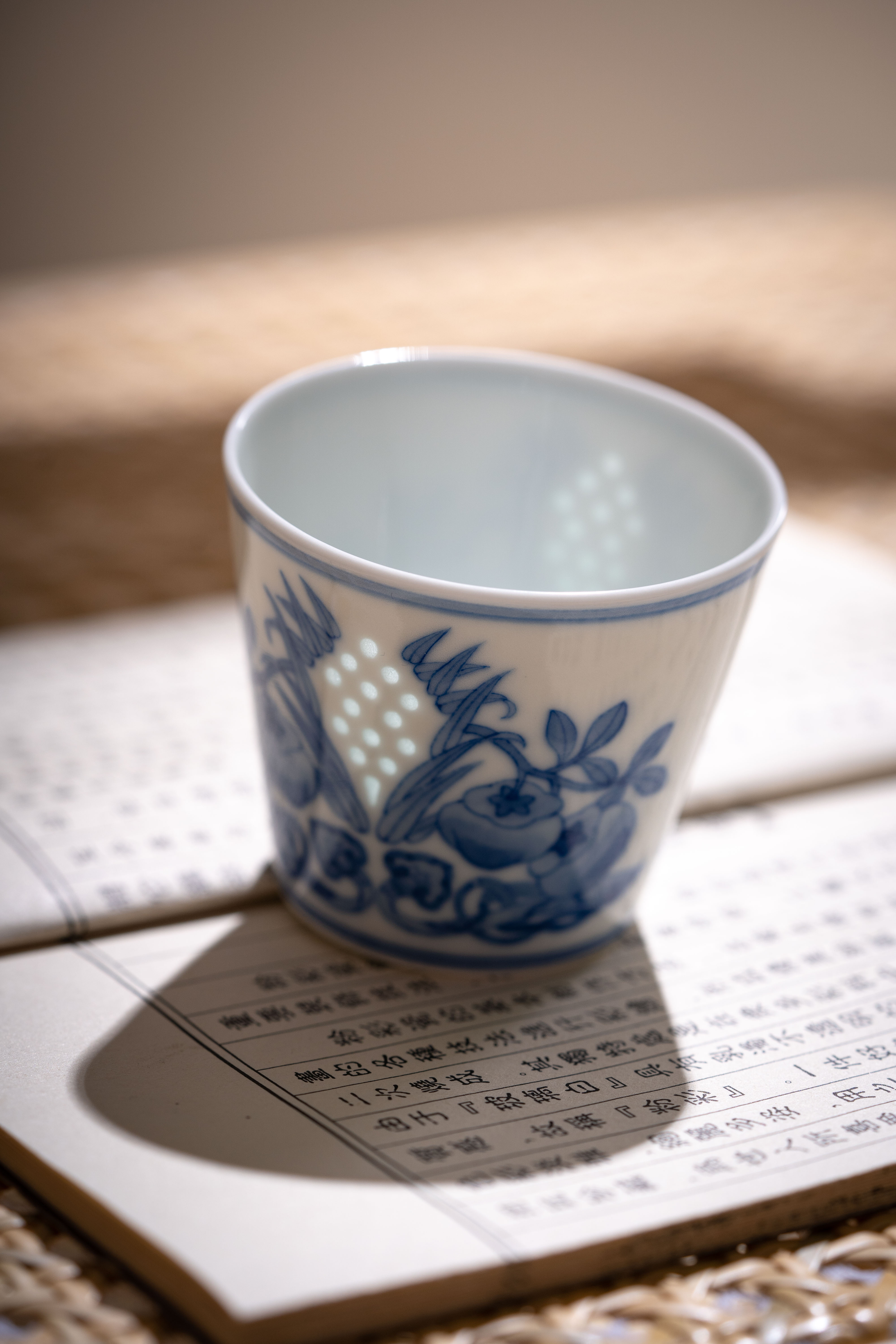 富玉窑 景德镇全手工青花玲珑柿柿如意手作茶器品茗杯主人杯