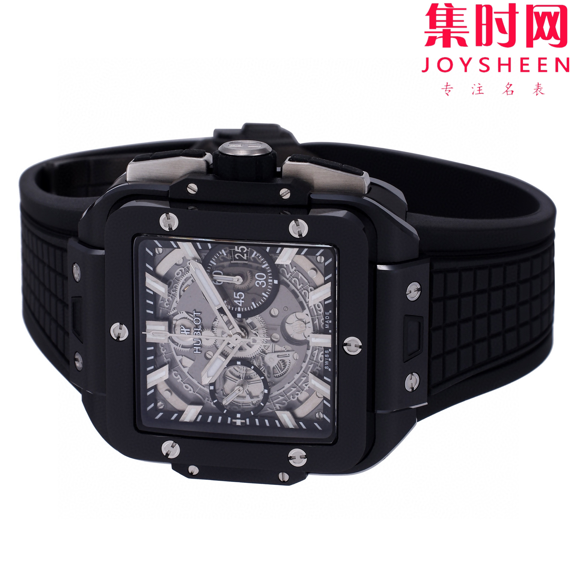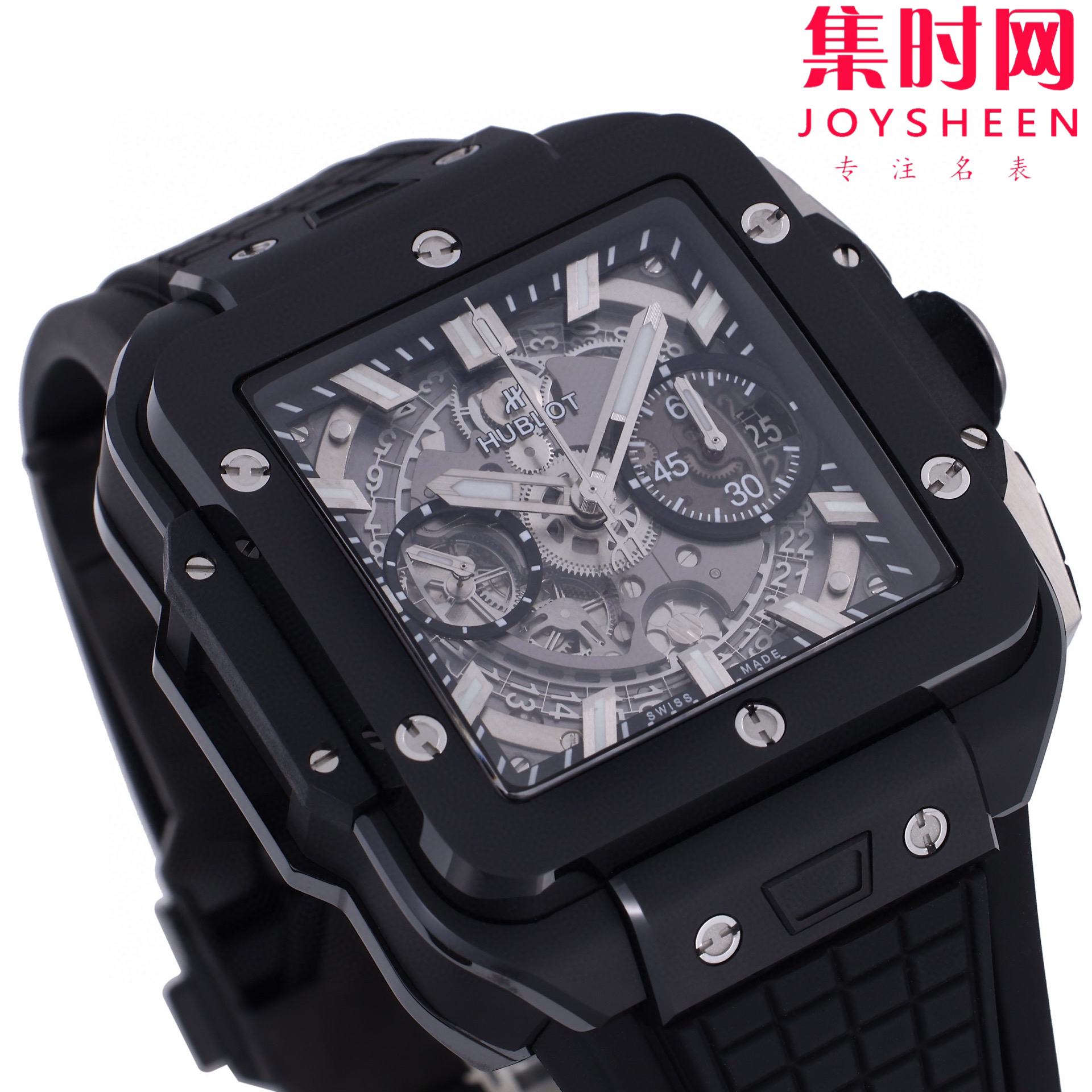 BBF新品荣耀发布全新SQUARE BANG UNICO系列 BBF黑陶瓷方形计时男士腕表 方形大爆炸 全陶瓷壳 不计成本采用高透蓝宝石字面 上下桥形蓝宝石 采用源自Big Bang系列的纹理橡胶表带和备受市场赞誉的一键快拆系统 定制恒宝专属HUB1280自动上链计时机械机芯 6点钟位置设有清晰可见的导柱轮 全镂空日历环 双计时盘显示设计取代了传统表盘 内部机芯的运转奥秘于此一览无遗 七彩纹指针质感无可挑剔 表径42mm 天花板级别 出品即ding配无需升级 欢迎玩家品鉴