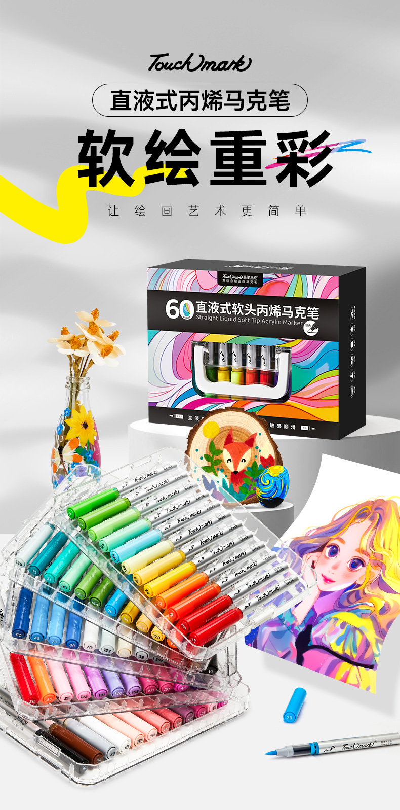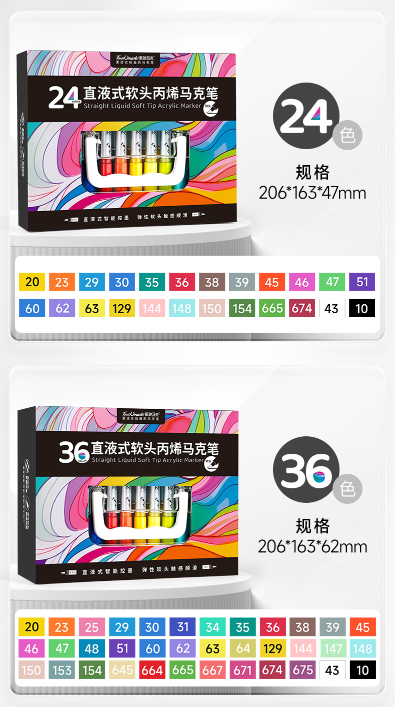 【FX】Touchmark泰驰马克软绘重彩&直液式软头丙烯马克笔24色- 84色