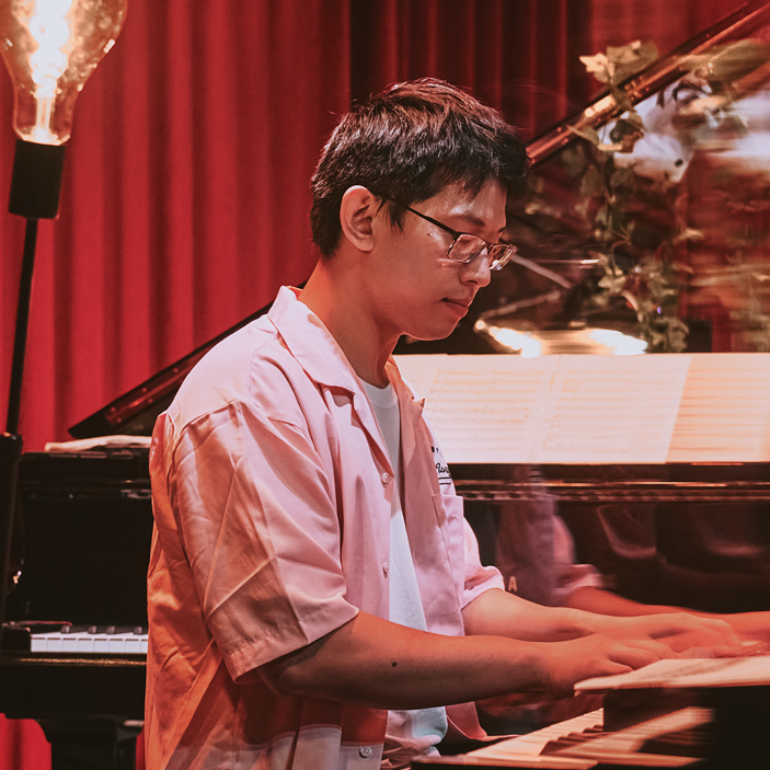 孙煜贤(键盘)作为职业乐手的同时,还是一名苦逼的博士研究生,正在上海某高校攻读工科博士。没有正经学习过音乐的他,先是误打误撞入坑V家,因为听到《动感新时代》的当季新番音乐CD而开始接触编曲,然后在大学某社团摆摊接触到融合音乐。来到上海后来JZ School蹭即兴而开始系统学习爵士,先后师从钢琴家朱蟒、曾皓,以及钢琴家Ben Paterson。