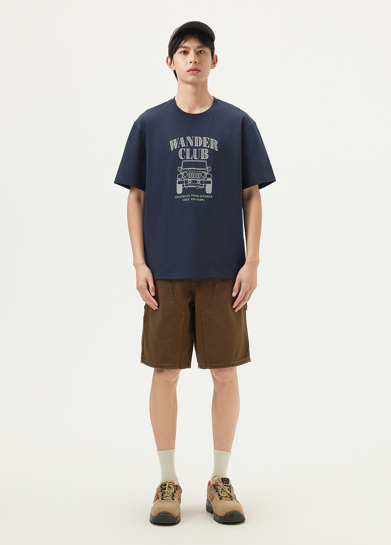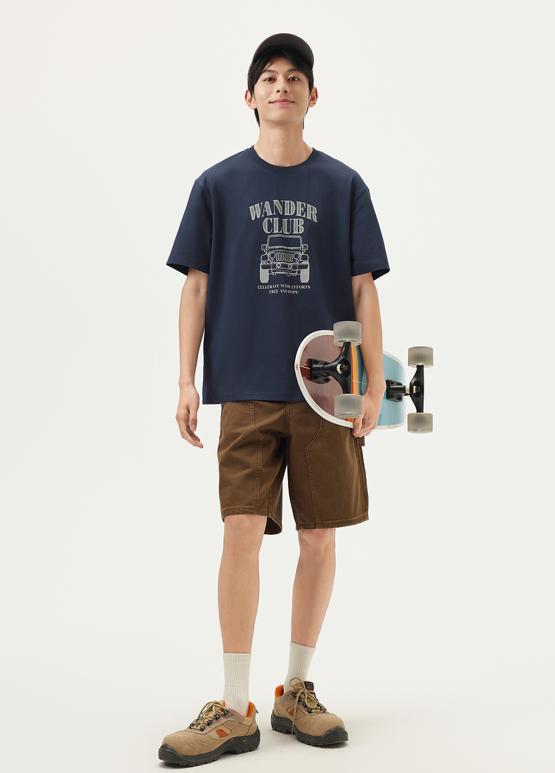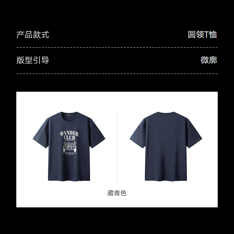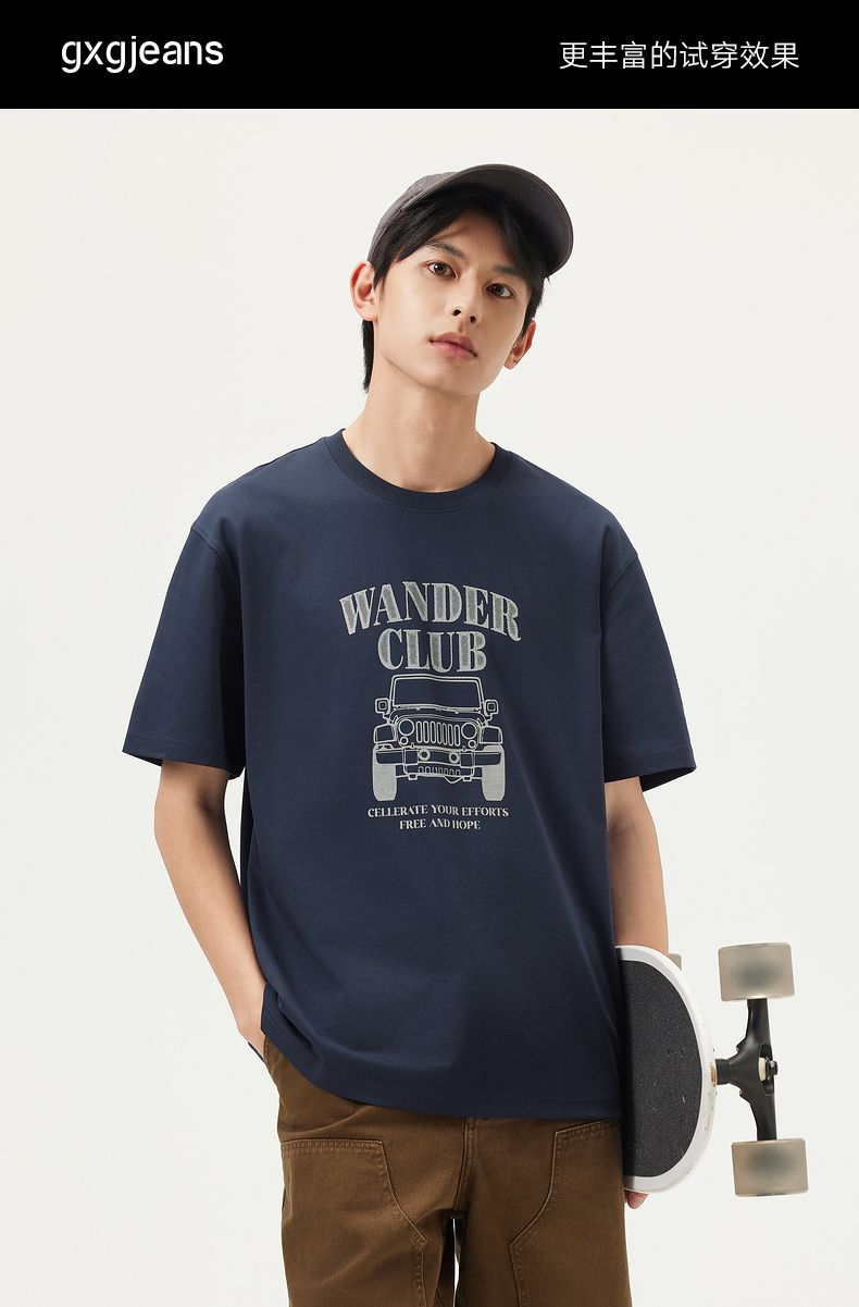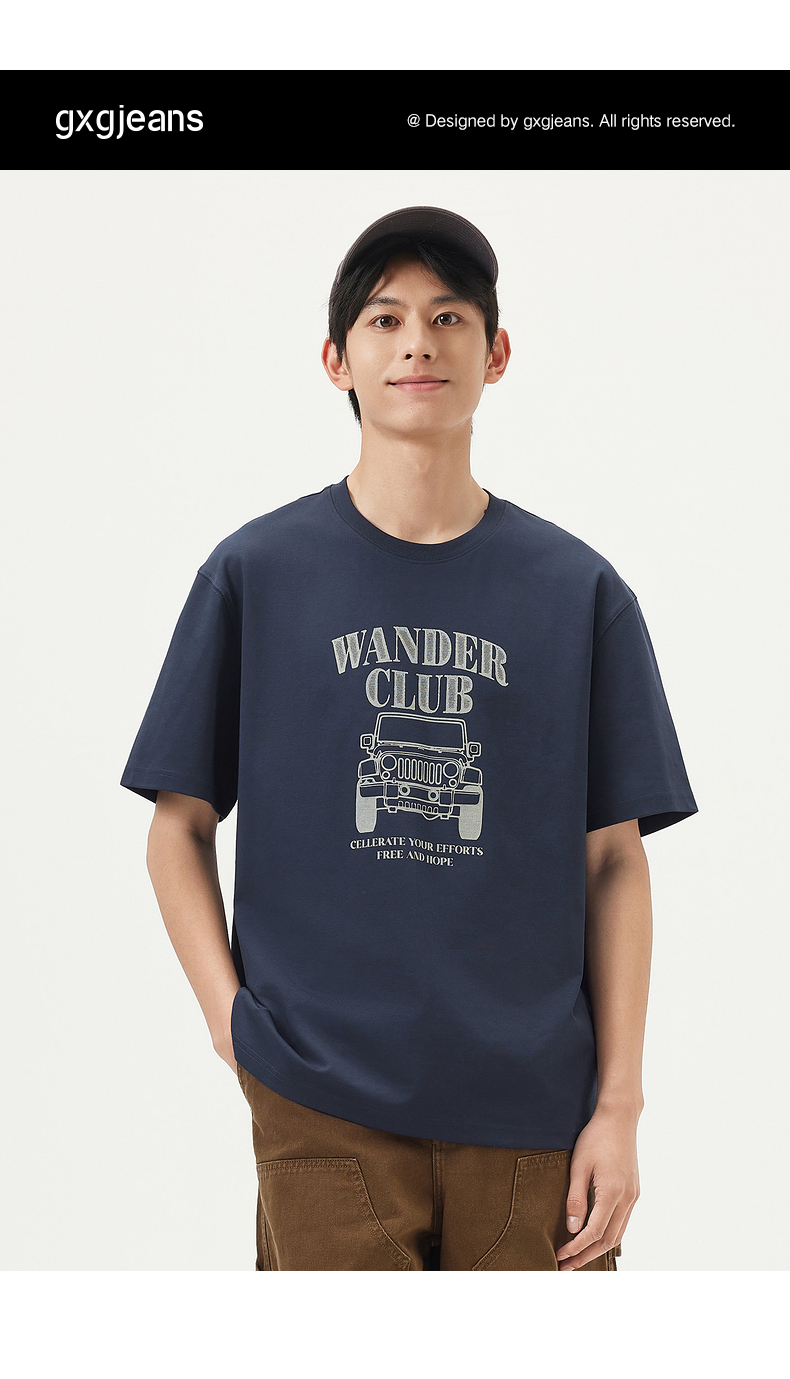 gxg.jeans男装 藏青色潮流图案时尚宽松圆领短袖T恤男25年夏热卖