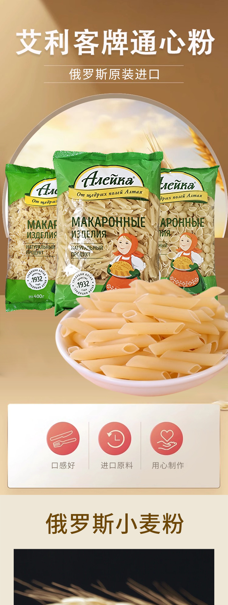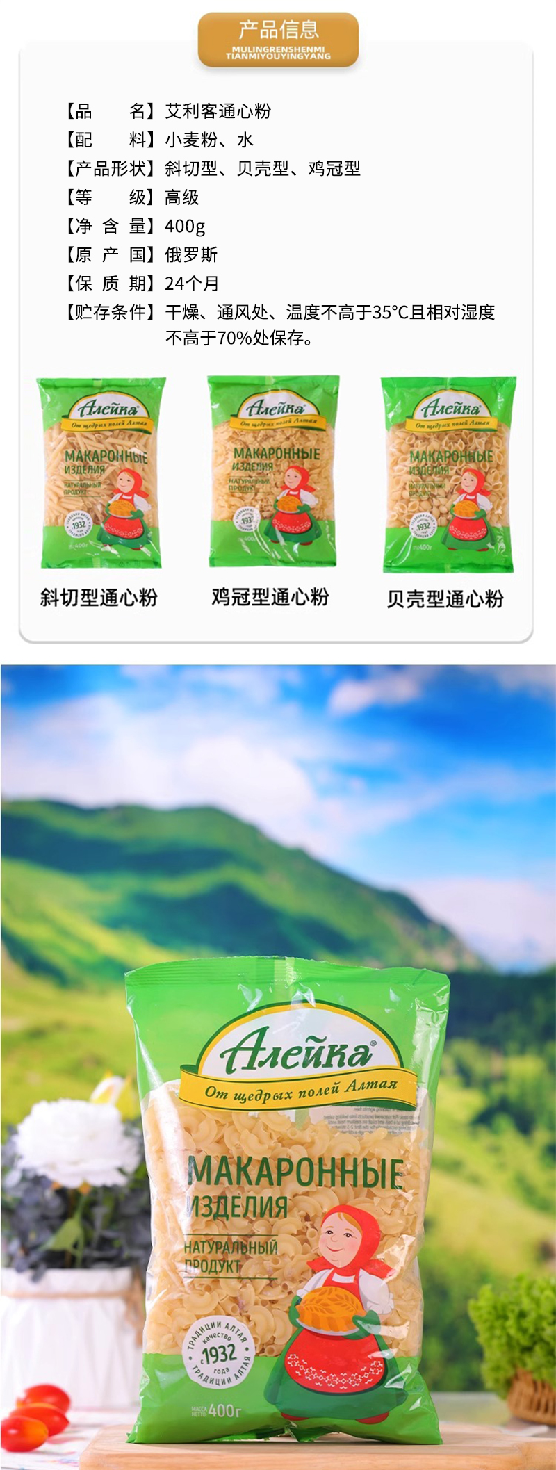 俄罗斯进口艾利客斜切型I 贝壳型I 鸡冠型通心粉400g