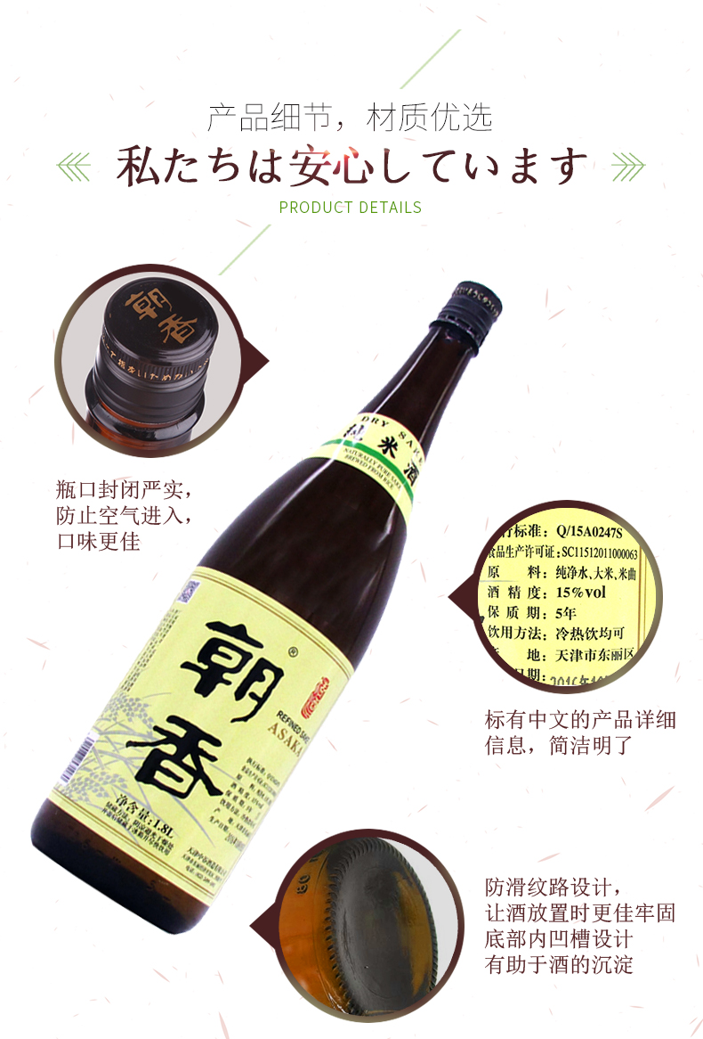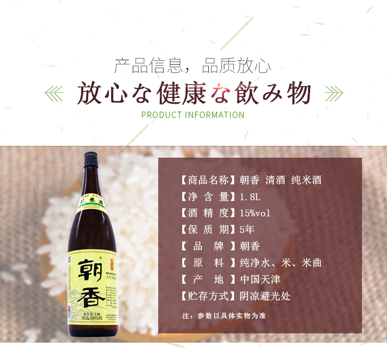 朝香 清酒 纯米酒 1800ml
